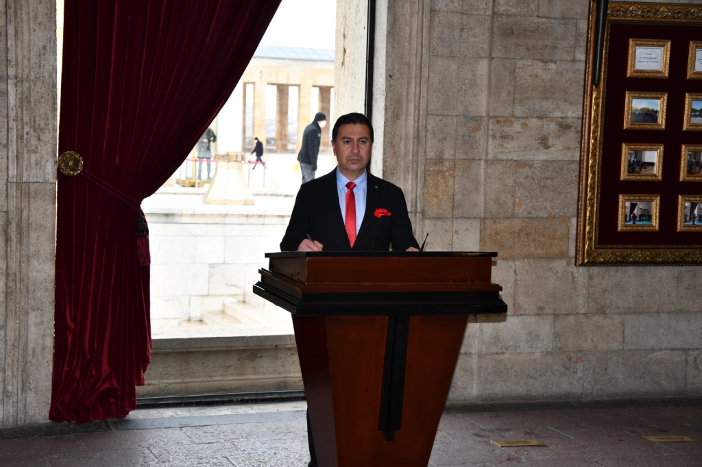 Anıtkabir ziyaretinden oldukça duygulanan Başkan Aras, Şeref Defteri'ne şunları yazdı: “Milli Mücadelenin başlangıcının ve Cumhuriyetimizin kuruluşunun 100. yıl dönümüne tanıklık ettiğimiz milletimiz için hizmet etme şerefine eriştiğimiz bu eşsiz dönemde tüm yaşamımız boyunca yürüdüğümüz yolunuzdan ayrılmayacağımıza, gösterdiğiniz ilke ve hedeflere sadakatle bağlı olacağımıza, yüce milletimizin ve Cumhuriyetimizin nice yüz yıllar boyunca payidar kalması için tüm varlığımızla çalışmayı sürdüreceğimize manevi huzurunuzda söz veriyoruz. Minnet, özlem ve saygılarımızla.”