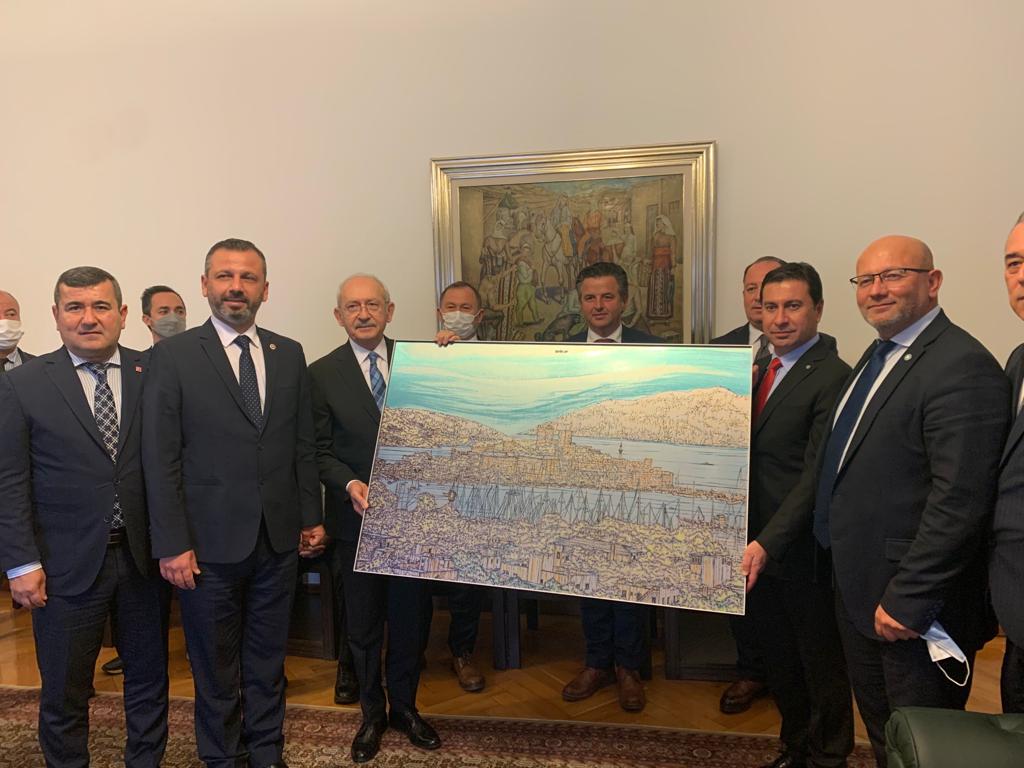 Görüşme sonunda Başkan Aras tarafından Genel Başkan Kılıçdaroğlu'na, Devrim Erbil'in eseri takdim edildi.