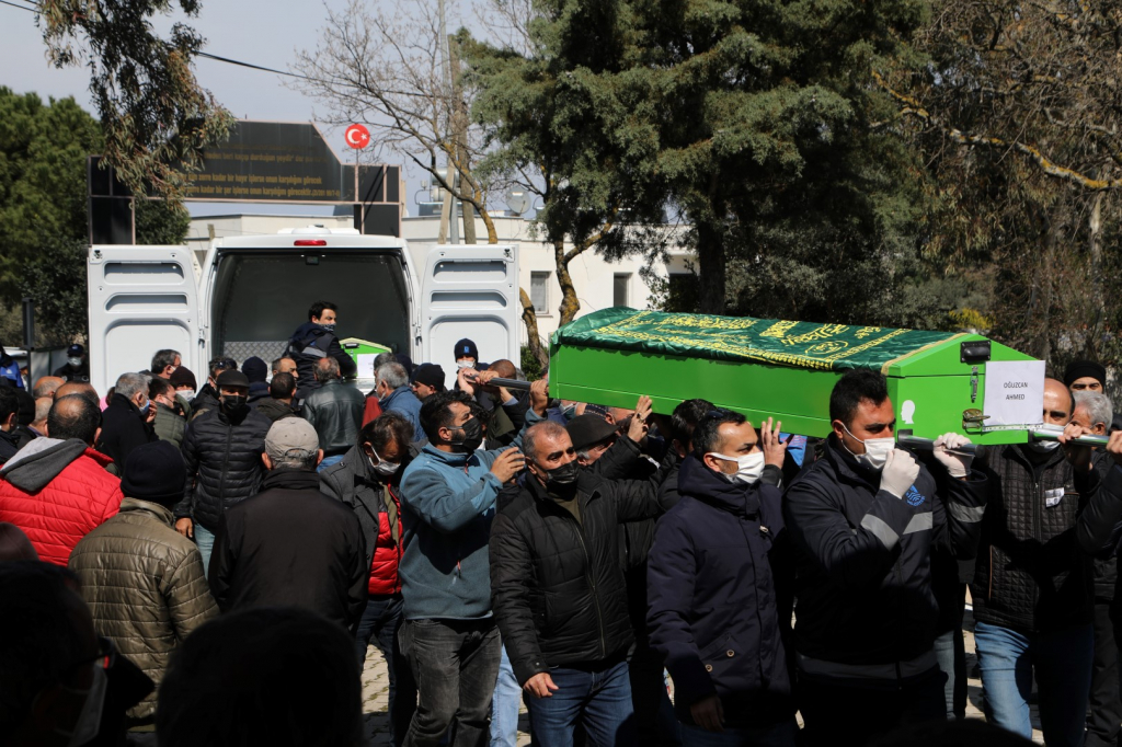 tarafından İzmir Adnan Menderes Havalimanı’ndan alınan cenazeler, Ebru Turan’ın