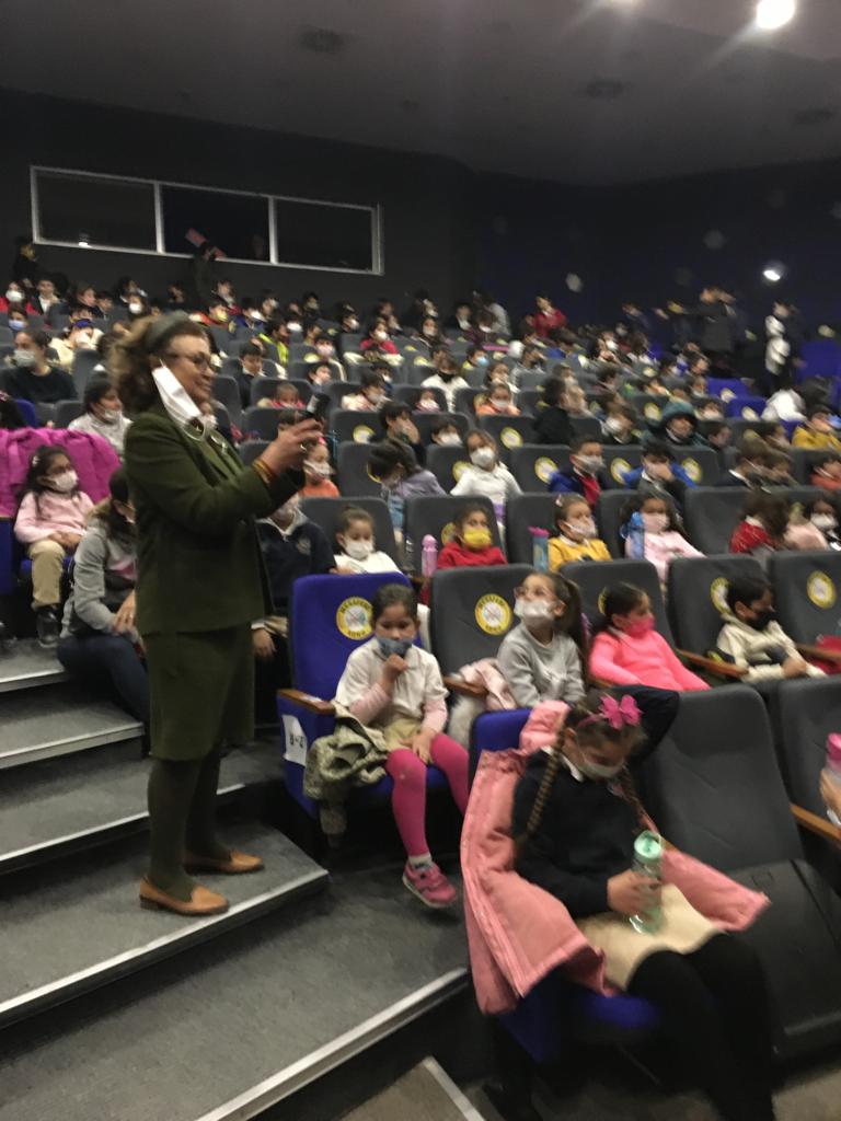 kısa sohbetinin sonunda öğrencilerin alkışları ile perde açıldı. Yer yer
