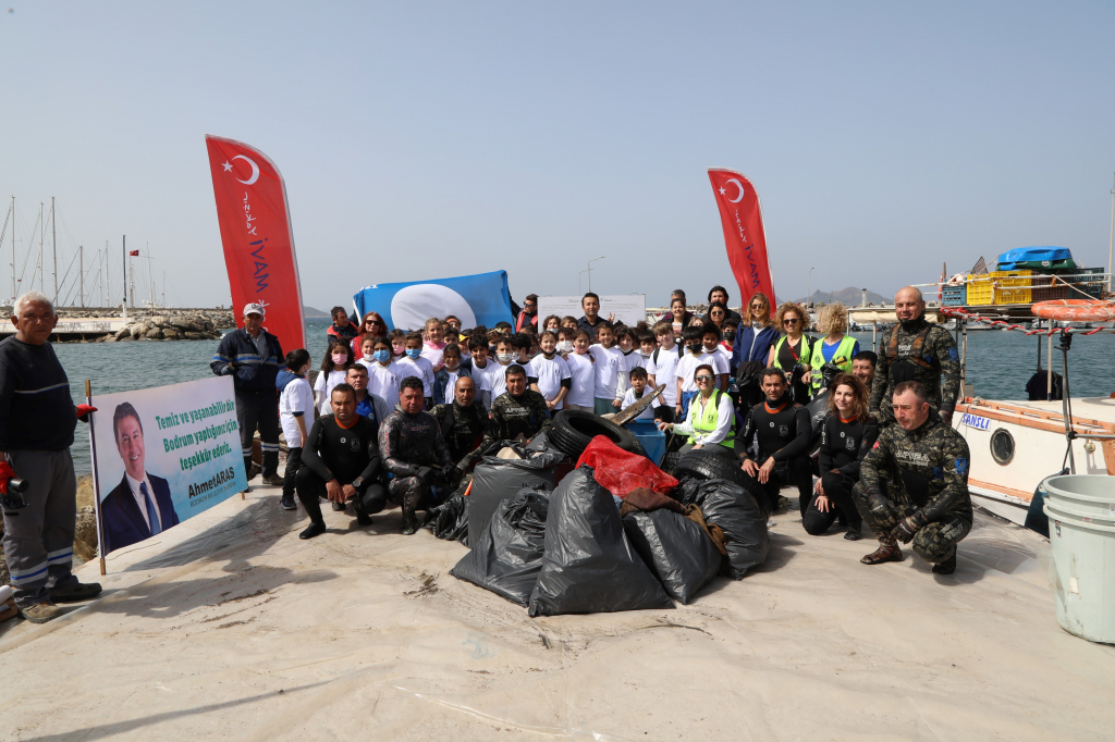 atık malzeme topladı. Temizlik çalışmalarına Turgutreis D-Marine de destek