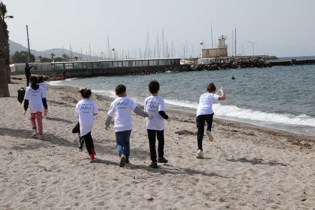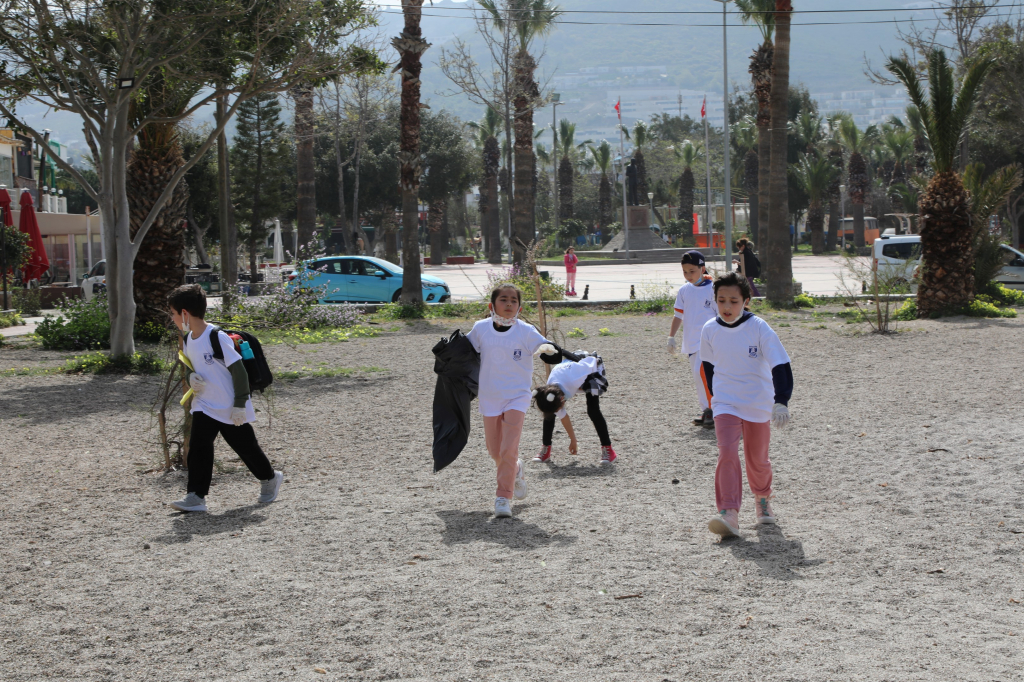 temizliğe öğrenciler de sahildeki çöpleri toplayarak destek verdi.