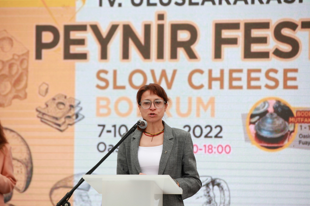 “Sevgili Kaymakamım, değerli Neptün Soyer, sevgili Milas Ticaret Odası Başkanım, değerli Tarımsal Daire Başkanlarımız, Muğla Büyükşehir Belediyemiz; bize katılan, değer veren peynir üreticileri, Bodrumlular, değerli basın mensupları hepiniz hoş geldiniz. Dördüncü Slow Food Yavaş Gari Slow Cheese Peynir Festivalimize hepiniz hoş geldiniz. Bizler Bodrum’da doğduk, büyüdük ve Bodrumlu olarak hep tarımın içerisinde olduk. Bodrum’da o zaman turizm yoktu. Bizler mandalin bahçelerinde doğduk, büyüdük. Büyüklerimizin yakınında büyükbaş, küçükbaş hayvanlarımız vardı. Büyüklerimiz onları otlaklara götürürdü. Peynirlerini sütlerini yaparlar onlarla beslenirdik. Doğal yedik, doğal içtik. Sağlıklıysak bu yüzden diyebilirim. Biz, Bodrum’da bunu yaşadık. Turizm sonradan geldi. İnşaatlar yaptık tarım alanlarımıza. Şu an Bodrum farklı bir rant gözüyle takip edilmekte. Ege ve Akdeniz biyoçeşitliliği açısından, florası açısından dünyanın en özel coğrafyası. Buraların korunması, bizim bence en büyük görevimiz. Bu yaptığımız festivallerle, Acı Ot Slow Çiz, Bağbozumu, Zeytin Çiçeği Festivali yapıyoruz. Çeşitli çalışmalarımız var bu konuda, gastronomiyi destekleyen ve yerel kültürün yaşaması için çalıştığımız. Bunların hepsi çok değerli çünkü yereli korumak çok önemli. Tabii ki Bodrum artık eskisi gibi değil bunu kabul ediyoruz. Ama yereli koruyarak gelişmek de mümkün. Son dönemde buna glokalizasyon deniyor. Hem yerelleşme hem lokalleşme ile ilgili bir birliktelik. O yüzden biz bunu koruyabiliriz artık doğaya dönüş tekrar başladı. Görüyorsunuz insanlar büyükşehirden kaçıyorlar ve doğaya dönüyorlar.”