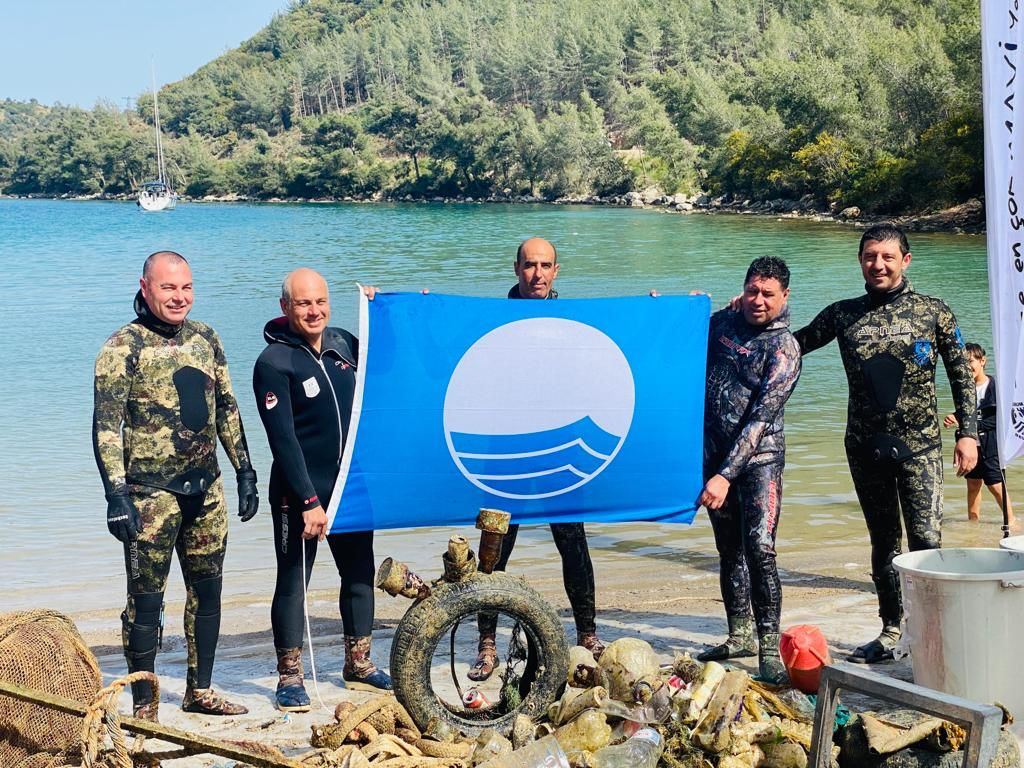 denizin dibi de dalgıçlar tarafından temizlendi. Üç saat süren etkinlikte 750