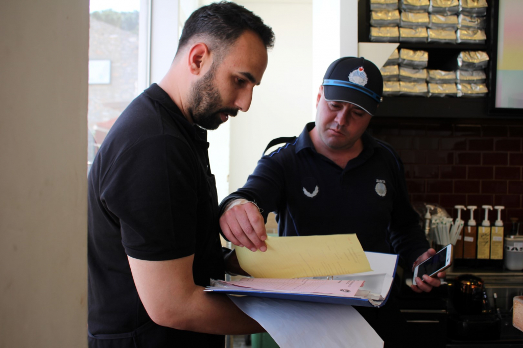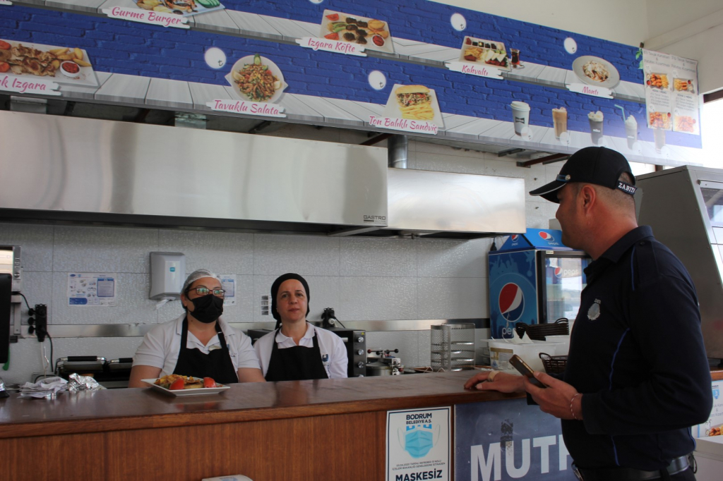 İşletmelerde gıda uygunluğu, hijyenik şartlar, fiyat etiketleri, mutfak içi temizliği, rafların, tezgâh üstlerinin temizliği ile işletme ruhsat ve vergi levhası, fiyat etiketi gibi kontrolleri tüm hızıyla sürdüren ekipler, Bodrum Belediye Gıda A.Ş.ye bağlı Mahfel Kafe’de de denetim yaptı. Kafe çalışanlarına bilgiler verilirken mutfak çalışanlarının hijyen uygunluğu da denetlendi. Ayrıca resmi evrak kontrolleri yapılarak raporlandı.