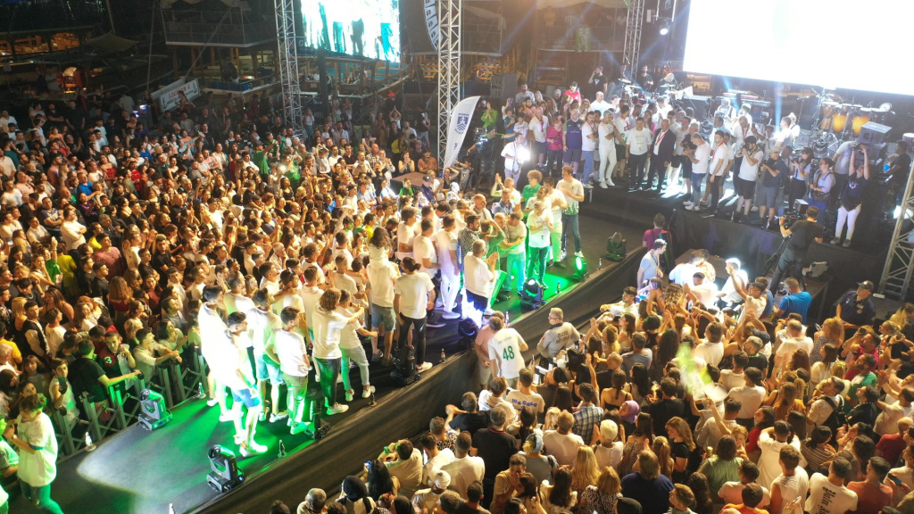 meşaleler eşliğinde sahnede kupa kaldırarak vatandaşlara coşku dolu anlar