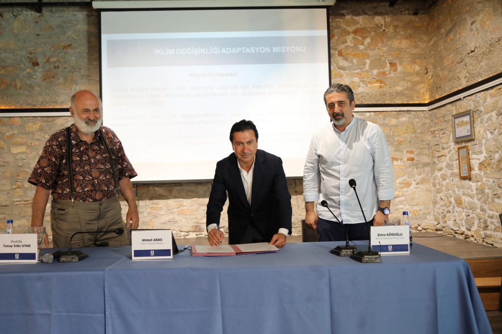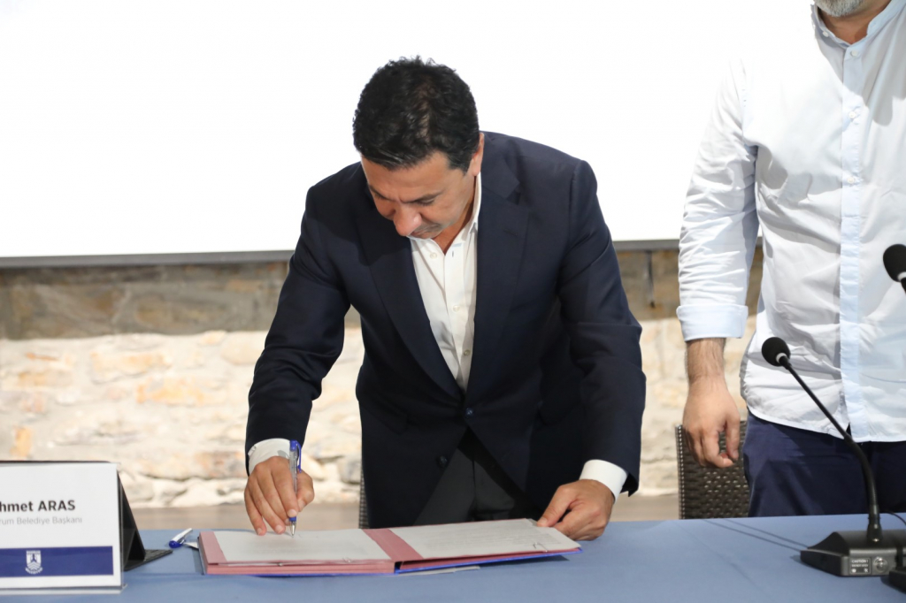 Başkan Ahmet Aras, Bodrum Belediyesi Trafo Kafe Hakan Aykan Kültür ve Sanat Merkezi’nde gerçekleştirilen toplantıda, AB İklim Değişikliği Adaptasyon Misyonu Sözleşmesi’ne imza attı.