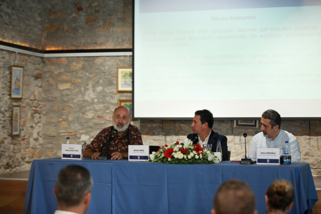 Sunumun ardından Bodrum Belediye Başkanı Ahmet Aras, İklim Değişikliğine Uyum ve Toplumsal Değişim Misyonu Sözleşmesi’ne imza attı. Bodrum Belediyesi’nin paydaşlarına da bu konuda çok iş düştüğünü ifade eden Aras, “Misyona desteklerini beyan etmek için sözleşmeyi temsil ettiğiniz kurum, kuruluşlarınız adına onaylamanız ve imzacısı olmanız son derece önemli. Sözleşmeyi imzalamayı uygun görecek olanlar, yerel paydaşlar, sivil toplum, iş dünyası, endüstri, araştırma kuruluşları ve vatandaşlarla ilişki kurarak kapsayıcı bir şekilde yerelde iklim direncini oluşturmaya kararlı olduklarını göstermiş olacaklardır. Sözleşme oldukça görünür bir siyasi taahhüttür ancak yasal olarak bağlayıcı değildir. Ulusal ve uluslararası anlaşmalar çerçevesinde, ortak ama farklılaştırılmış sorumluluk anlayışı ile gerçekçi ve adil çözümlerin bulunması, sürdürülebilir politikaların hayata geçirilmesi, biyolojik kaynakların korunması, sürdürülebilirliğinin sağlanması ve yükümlülüklerin yerine getirilmesi son derece önemlidir. Bütün bunları gerçekleştirebilmenin yaşlı küremiz açısından büyük bir kazanım olduğunu düşünüyor, sözleşmeyi ‘Tek Bir Dünya, Tek Bir Bodrum’ için imzalıyorum.” dedi.