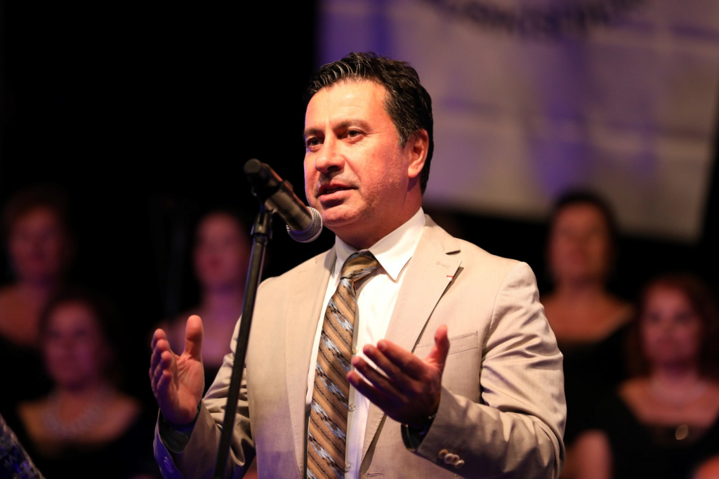 eserinde koroya katılarak sanatçılara eşlik ederken, konser sonrası sanatçılara