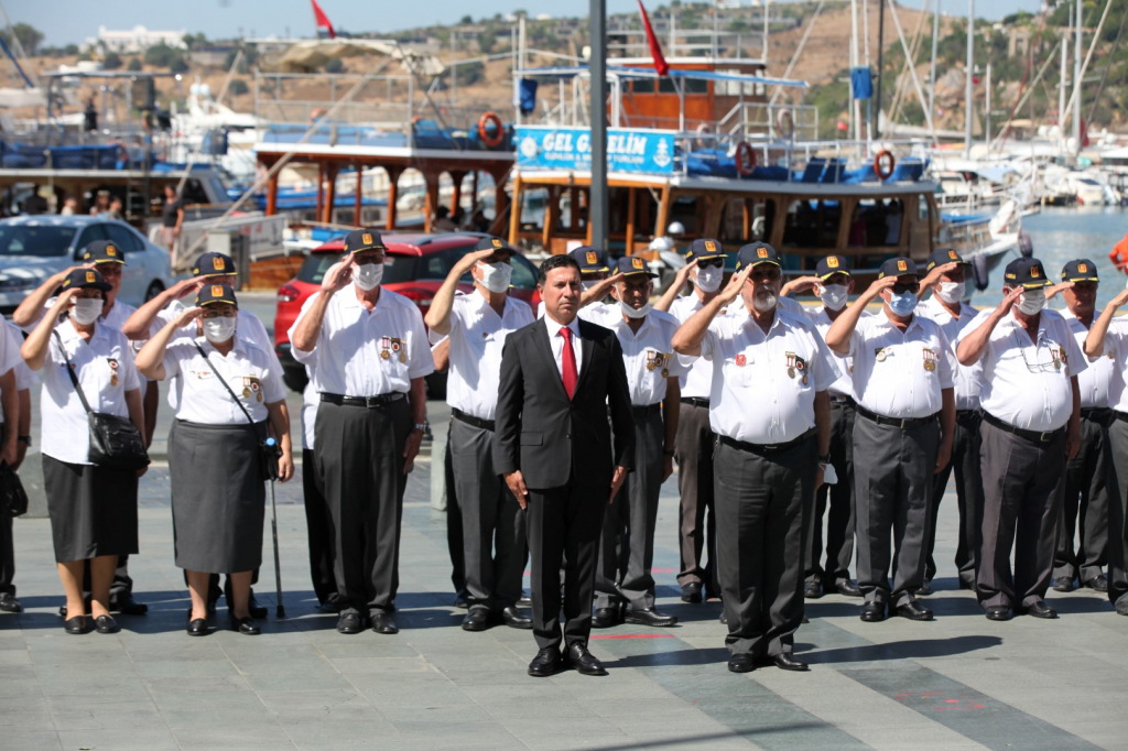 Türk Silahlı Kuvvetleri’nce (TSK) gerçekleştirilen Kıbrıs Barış Harekatı’nın 48. yıl dönümü dolayısıyla Bodrum Belediye Meydanı’nda düzenlenen törene Belediye Başkanı Ahmet Aras, Başkan Yardımcısı Tayfun Yılmaz, Muharip Gaziler Derneği Bodrum Şubesi Başkanı Hasan Külcü ve gaziler katıldı.