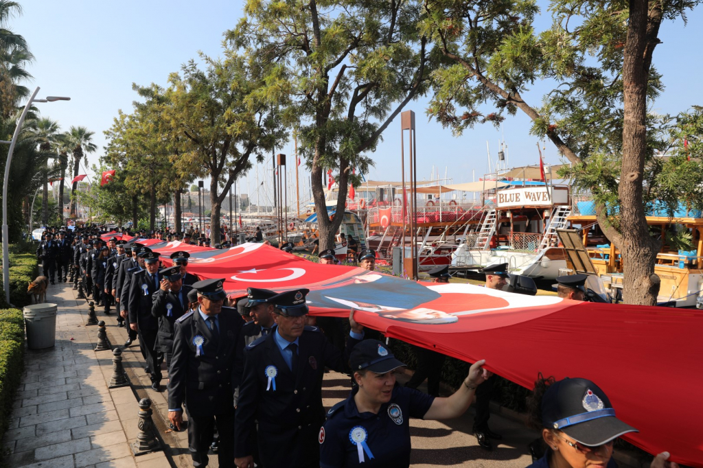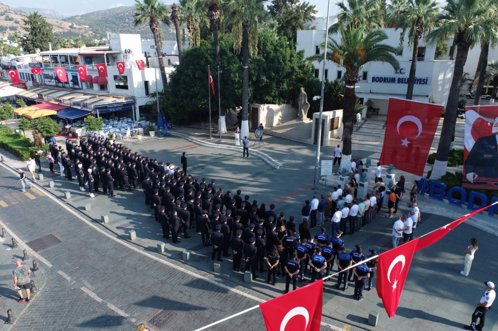 Zabıta teşkilatının 196’ncı kuruluş yıl dönümü etkinlikleri kapsamında Bodrum Belediye Meydanı'nda tören düzenlendi. Atatürk Anıtı'na çelenk sunumuyla başlayan törende saygı duruşunun ardından İstiklal Marşı okundu.
