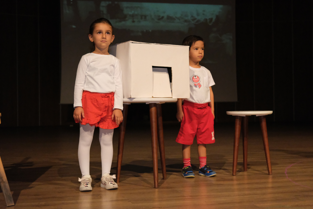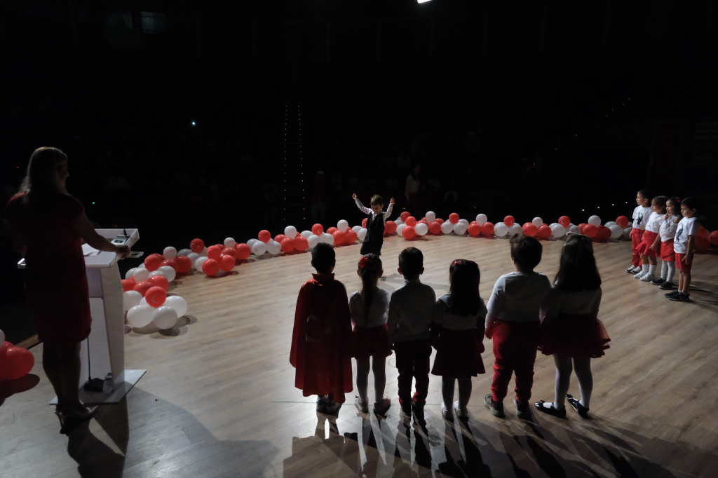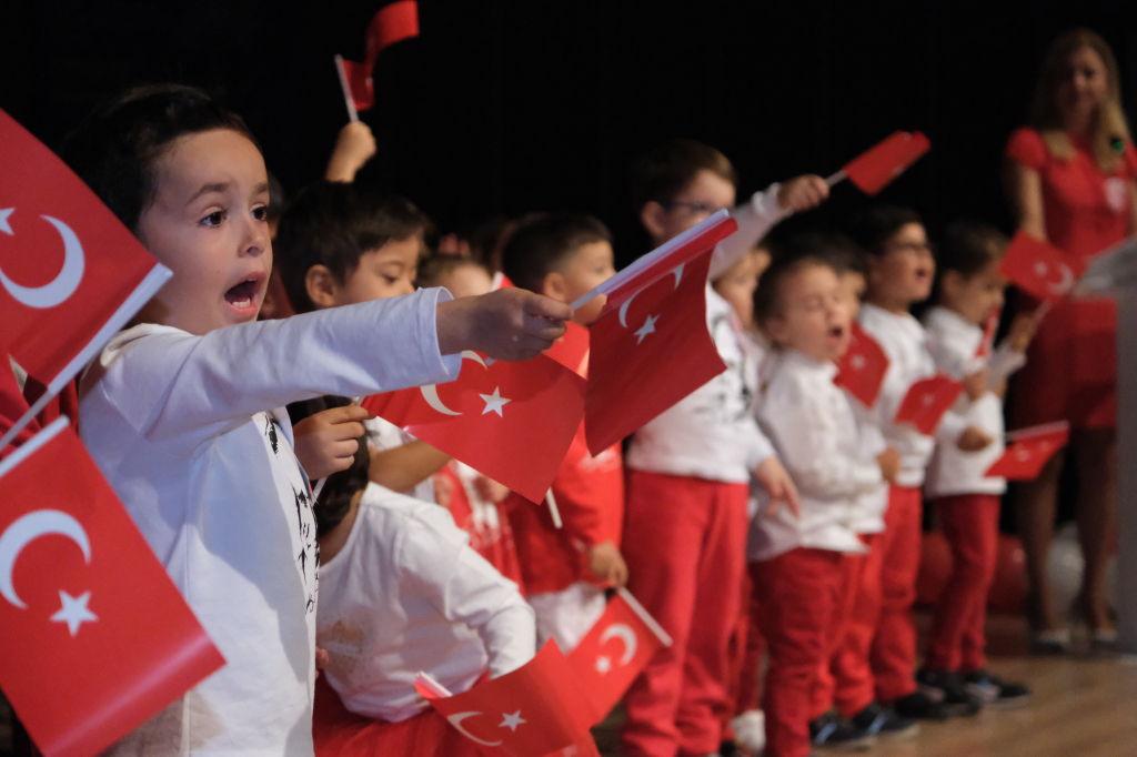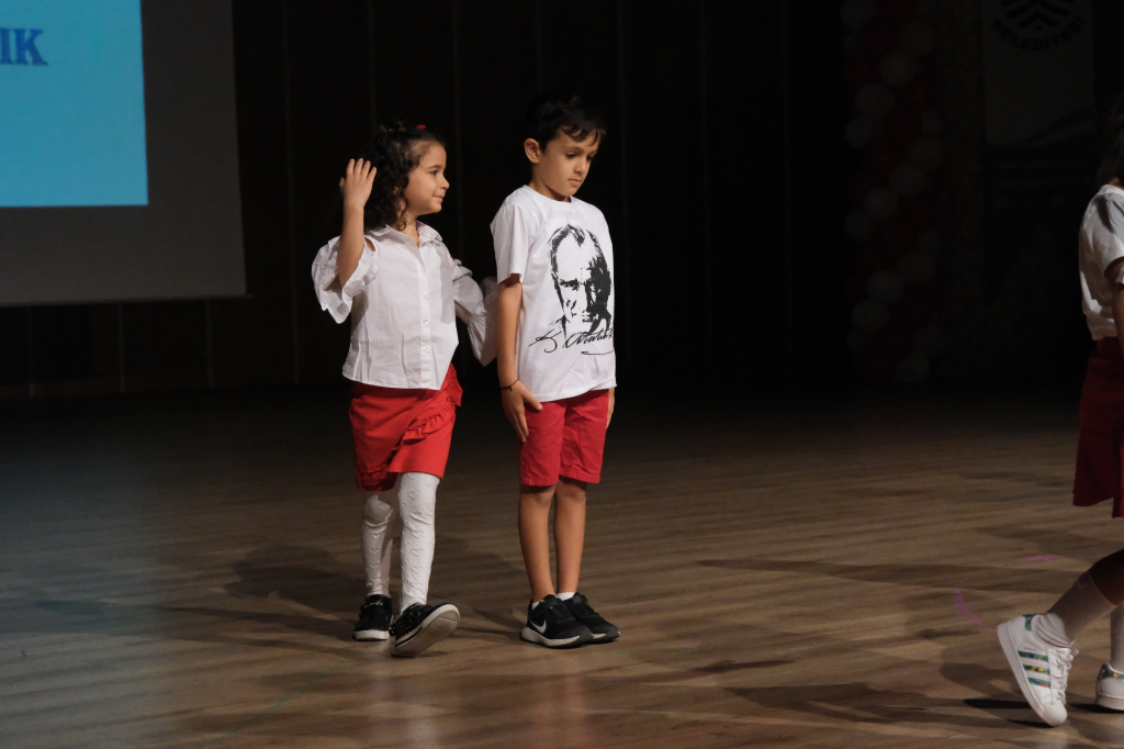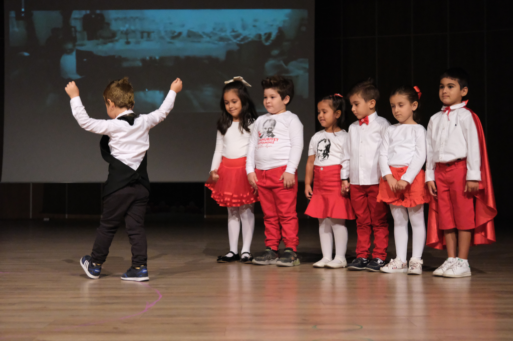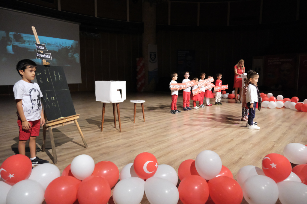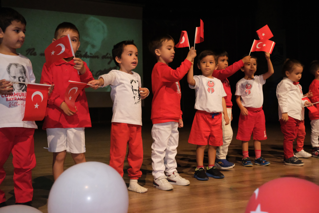 Herodot Kültür Merkezi’nde düzenlenen kutlama programına öğrenciler, öğretmenler, okul yönetimi ve öğrencilerin aileleri katıldı. Cumhuriyetin kazanımlarının anlatıldığı gösteride 4 ve 5 yaş grubundaki öğrenciler performanslarıyla büyük beğeni topladılar ve aileleri tarafından uzun süre alkışlandılar.