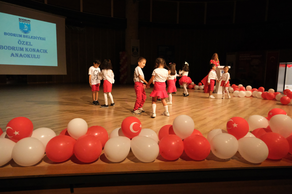 Bodrum Belediyesi Özel Bodrum Konacık Anaokulu tarafından düzenlenen 29 Ekim Cumhuriyet Bayramı kutlama programında minik öğrenciler 'Sana Borçluyuz' isimli gösterileriyle büyük beğeni topladı.