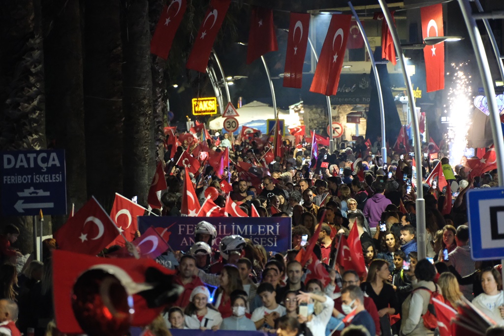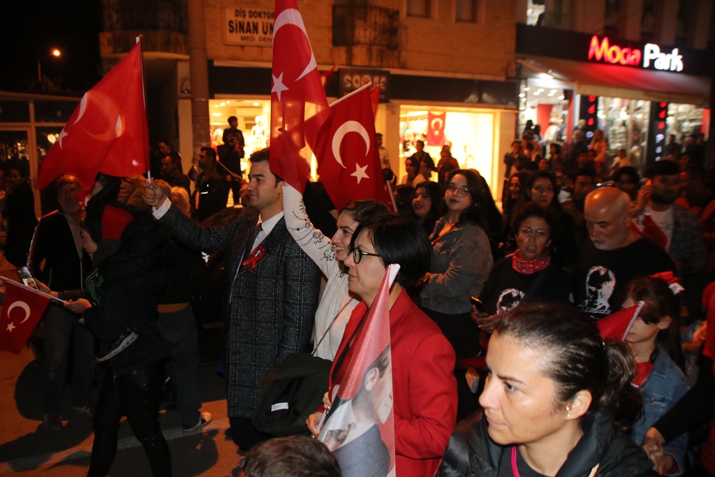 Meclis Üyesi Tamer Mandalinci, 7’den 77’ye elinde Atatürk ve Türk bayraklarıyla bayram coşkusunu Turgutreis Meydanı’na taşıyan vatandaşlara teşekkür ederek “Cumhuriyet paylaştıkça güzel, Atatürk’ün izinden gittikçe ilelebet yaşayacak Cumhuriyet.” dedi.