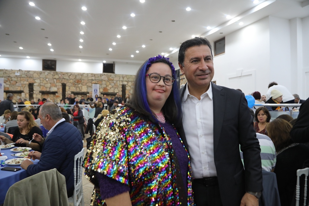 Sevgi seli yaşanan gecede Başkan Aras, çocuklar ve gençlerle yakından ilgilenirken dans ederek yöresel oyunlar oynadı. Doyasıya eğlendikleri gecede özel gereksinimli vatandaşlar ve aileleri, 3 Aralık Dünya Engelliler Günü dolayısıyla hazırlanan, üzerinde “Bir gün değil her gün birlikteyiz” yazılı pastayı Başkan Aras ile birlikte kestiler.