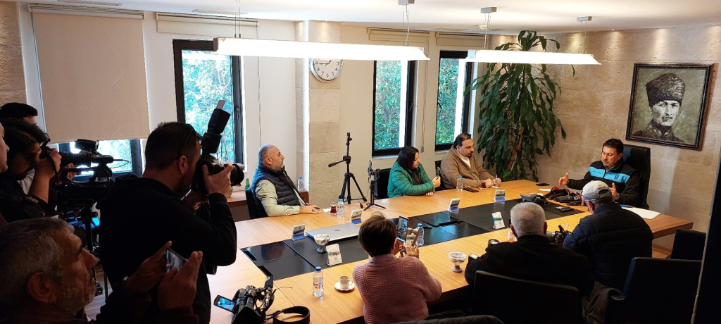 Bodrum Belediyesi toplantı salonunda, yerel ve ulusal basın temsilcilerinin katılımıyla gerçekleşen bilgilendirme toplantısında konuşan Başkan Aras, bölgede Bodrum’dan gönüllülerin ve belediye ekiplerinin çalışmalarına devam ettiğini ifade etti.