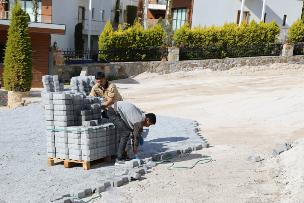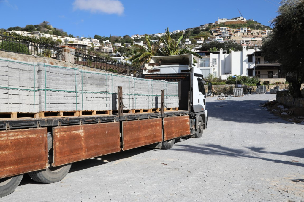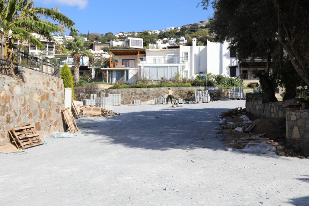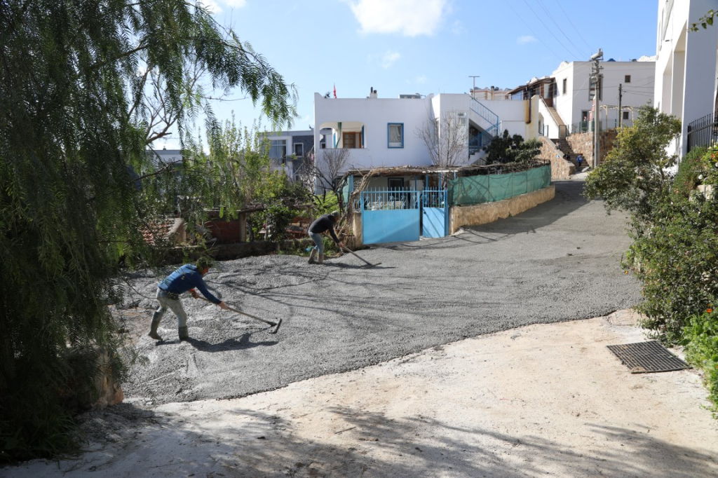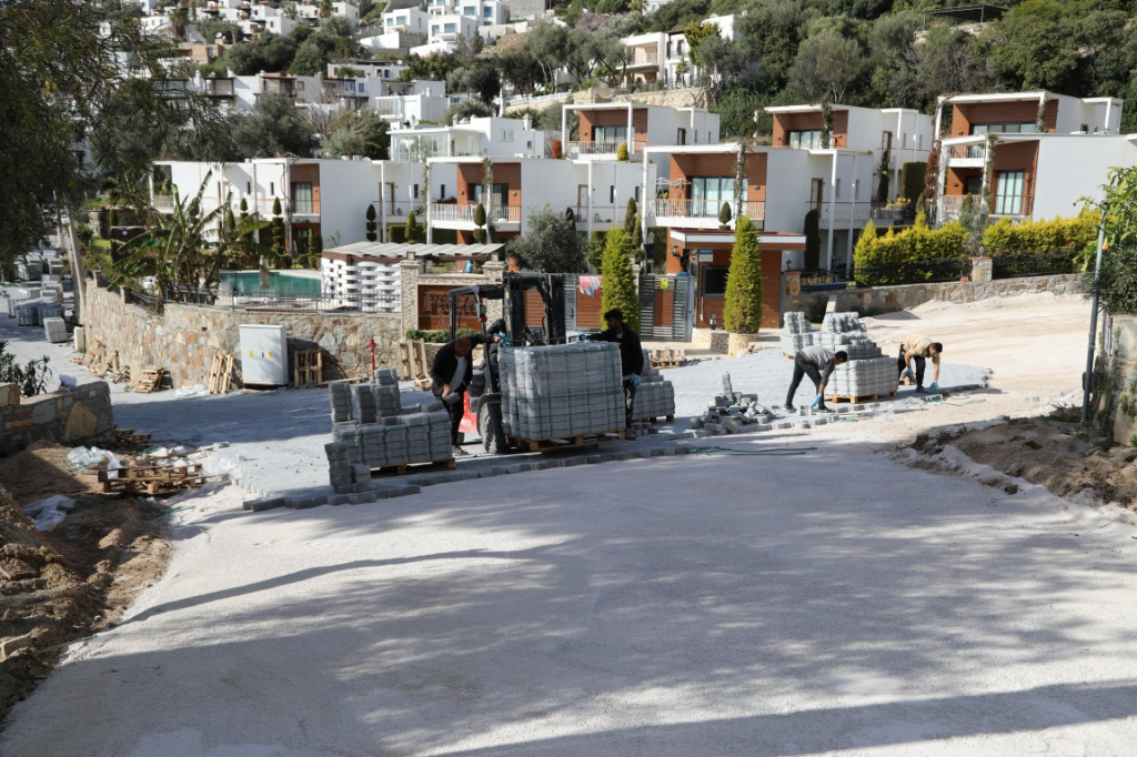 Bodrum Belediyesi, ilçe genelinde sürdürdüğü asfalt ve sathi kaplama yol çalışmalarıyla birlikte beton yol yapımı ve parke taş döşeme çalışmalarına devam ediyor