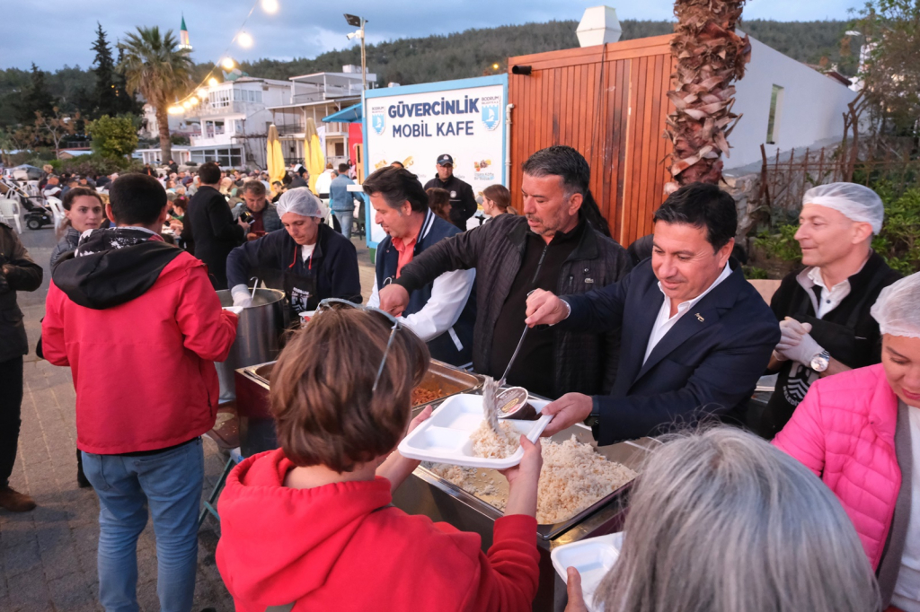 Güvercinlik sahilindeki Belediye Mobil Kafe’nin önünde gerçekleşen iftar programına, Bodrum Belediye Başkanı Ahmet Aras, belediye meclis üyeleri, Mahalle Muhtarı Günay Şafak ve çok sayıda vatandaş katıldı.
