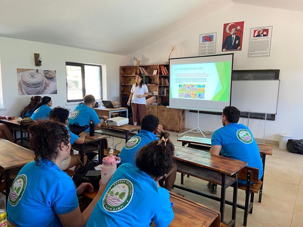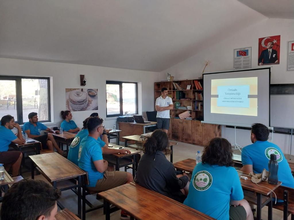 Bodrum Belediyesi’nin tarımsal kalkınma hamlesi kapsamında tarım ve üretimin önemine dikkat çekmek ve gençlerde farkındalık yaratmak amacıyla başlatılan ve bu yıl da devam eden kampta sürdürülebilir tarım, tıbbi ve aromatik bitkiler, tohumculuk, arıcılık, örtü altı yetiştiriciliği, temel gıda güvenliği ve hijyeni, temel bitki koruma gibi pek çok konuda ziraat mühendisleri ve akademisyenler tarafından eğitim veriliyor.