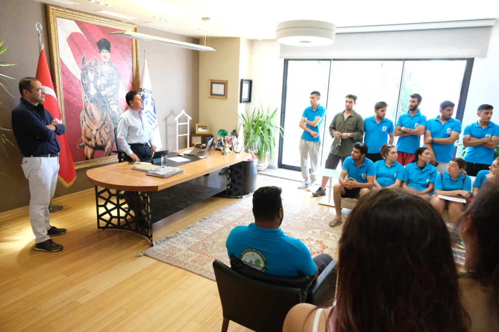 Bodrum Belediyesi Tarımsal Hizmetler Müdürlüğü tarafından düzenlenen Garaova Gençlik ve Tarım Kampı katılımcıları, Bodrum Belediye Başkanı Ahmet Aras’ı makamında ziyaret etti.