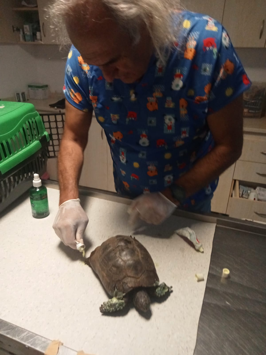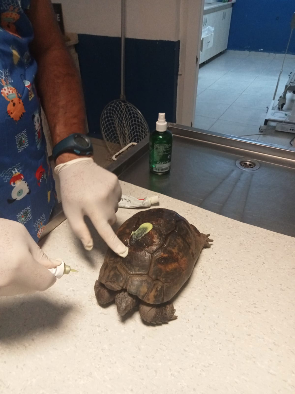 alınan kaplumbağaların ayak ve kabuklarında oluşan yanıklara ilk müdahalenin