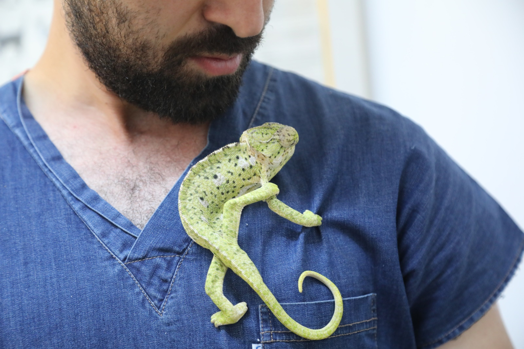 yaralı bir bukalemunu misafir etti.