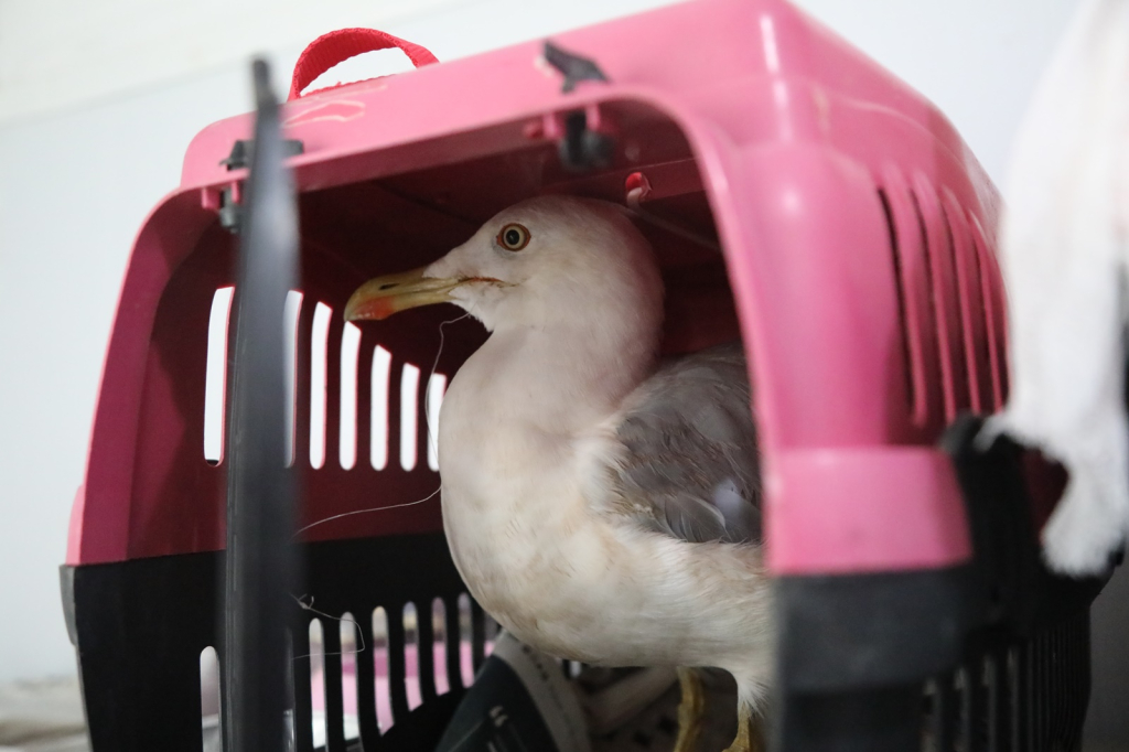 misina dolanmış martı, halsiz kumru yavrusu, pençesinde kırık olan şahin ve