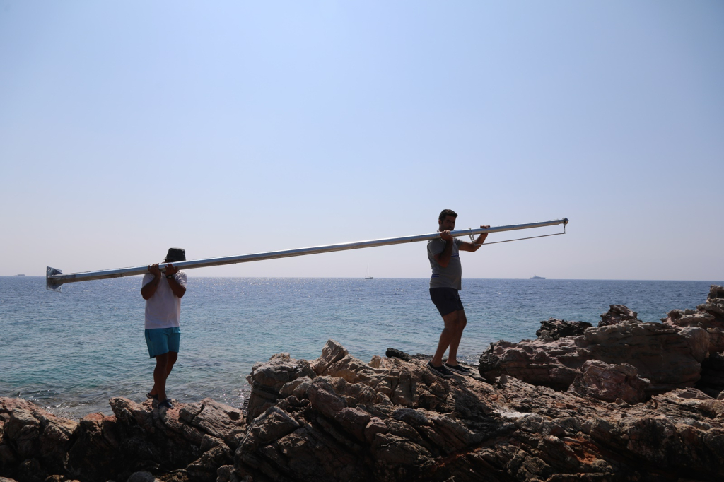 eşsiz güzellikteki koylara bayrak direkleri dikerek Türk Bayrakları asan ekipler