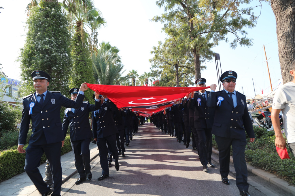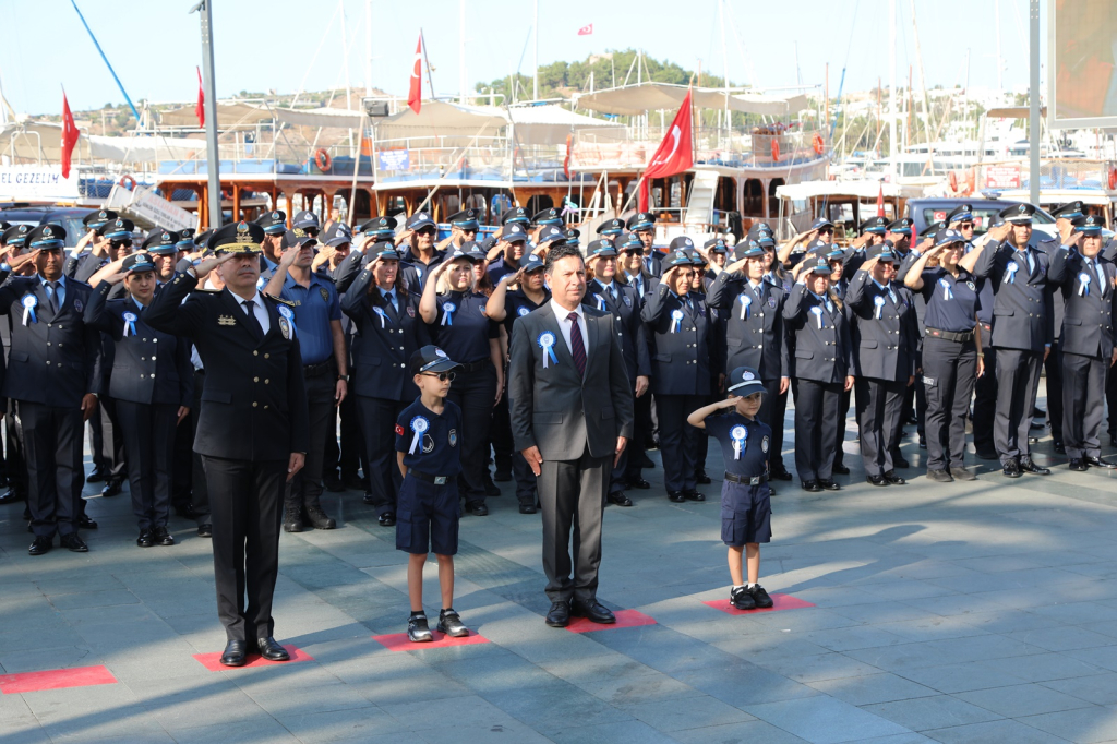 yıl dönümü etkinlikleri kapsamında Bodrum Belediye Meydanı'nda tören