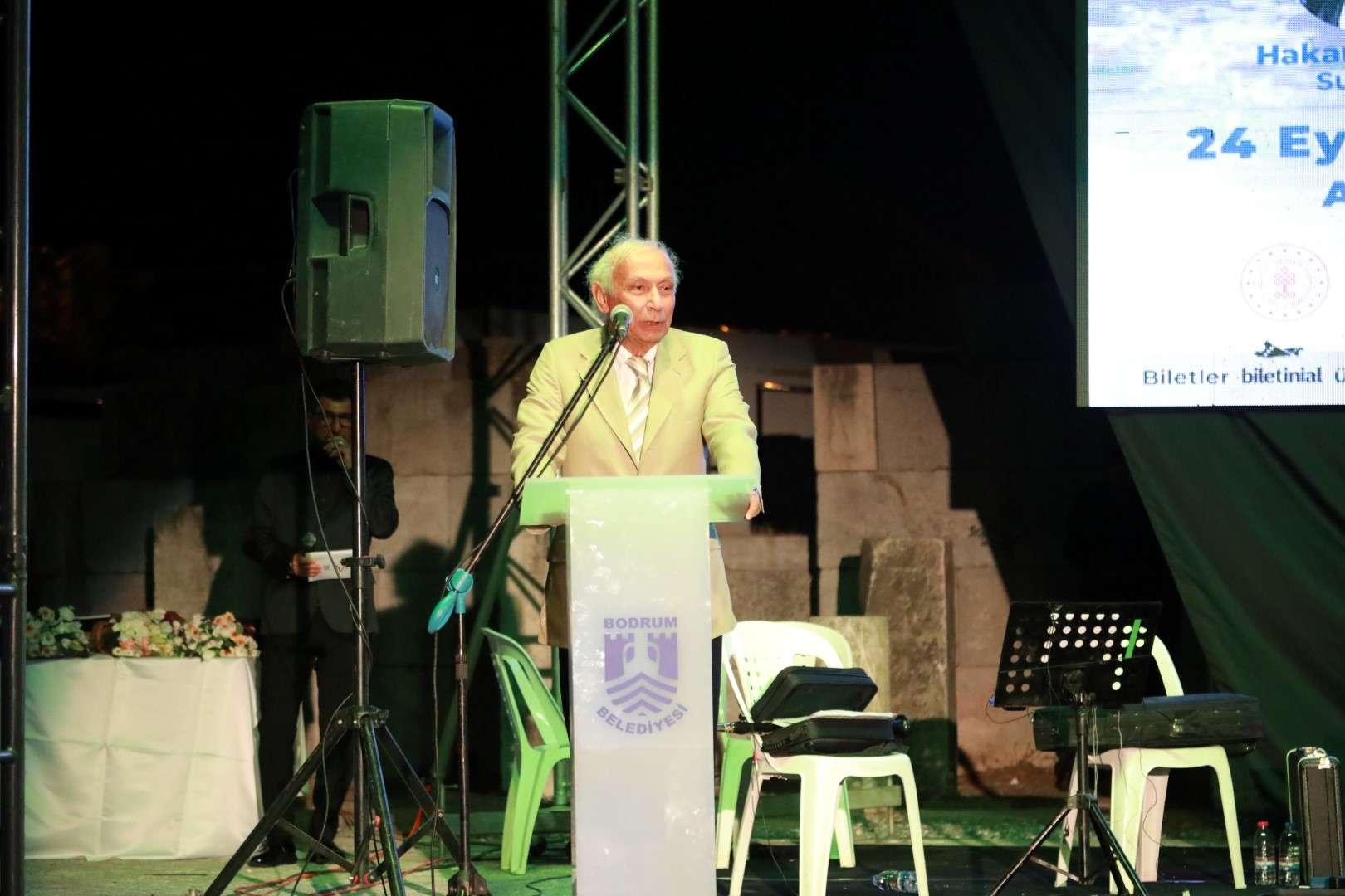 Etkinliğe her türlü desteği veren Bodrum Belediye Başkanı Ahmet Aras’ı temsilen konuşan Başkan Vekili Emel Çakaloğlu ise, “Zeki Müren bizden biriydi, bir Bodrumluydu. Yaşamak için Bodrum’u seçmişti. Bodrum’da mütevazı evinde, halkın içinde yaşamını sürdürdü. Ölümünden 6-7 ay önce vasiyetini yazdı ve hepinizin bildiği gibi Mehmetçik Vakfına ve TEV’e mirasını bıraktı. Aydınlık geleceğe, Atatürk ilke ve inkılapları doğrultusunda yetişecek çocuklarımıza bıraktı. Hepimiz ona minnet borçluyuz. Ruhu şad olsun. Kesintisiz 15 yıl süren radyo konserleri, sayısı 600’ü geçen plak ve kaset, 300’den fazla beste, sahneye getirdiği değişikliklerle Zeki Müren, Türkiye’nin Sanat Güneşidir. Son konserini 1984 yılında Bodrum Kalesi’nde veren sanatçı, bu konserinin gelirini Bodrum Antik Tiyatrosu’nun restorasyonuna ayırmıştır. Bunları neden söylüyorum? Çünkü Zeki Müren’e sadece sanatçı gözüyle bakamayız. Bodrum’un Paşası Zeki Müren, her şeyden önce vicdanlı, öngörülü, sevgi dolu bir insandı. Bir insanda olması gereken vasıfları tamamen karşılıyordu. İşte bizler de bu nedenle onu çok sevdik ve kalbimizde yaşattık. Daima yaşatacağız.” dedi.