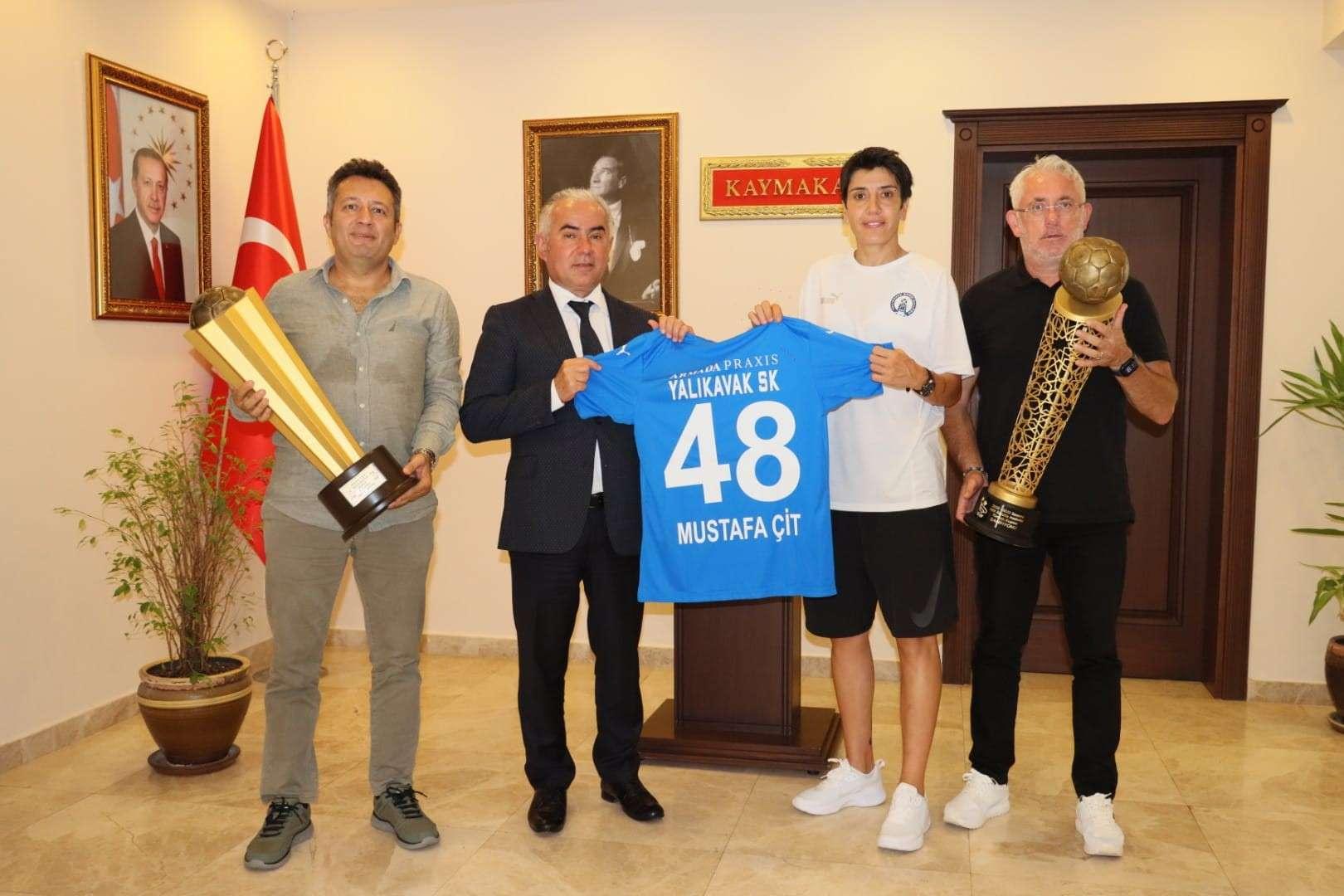 Praxis Yalıkavak Spor Kulübü Başkanı Mehmet Esen, kulüp yöneticileri, teknik