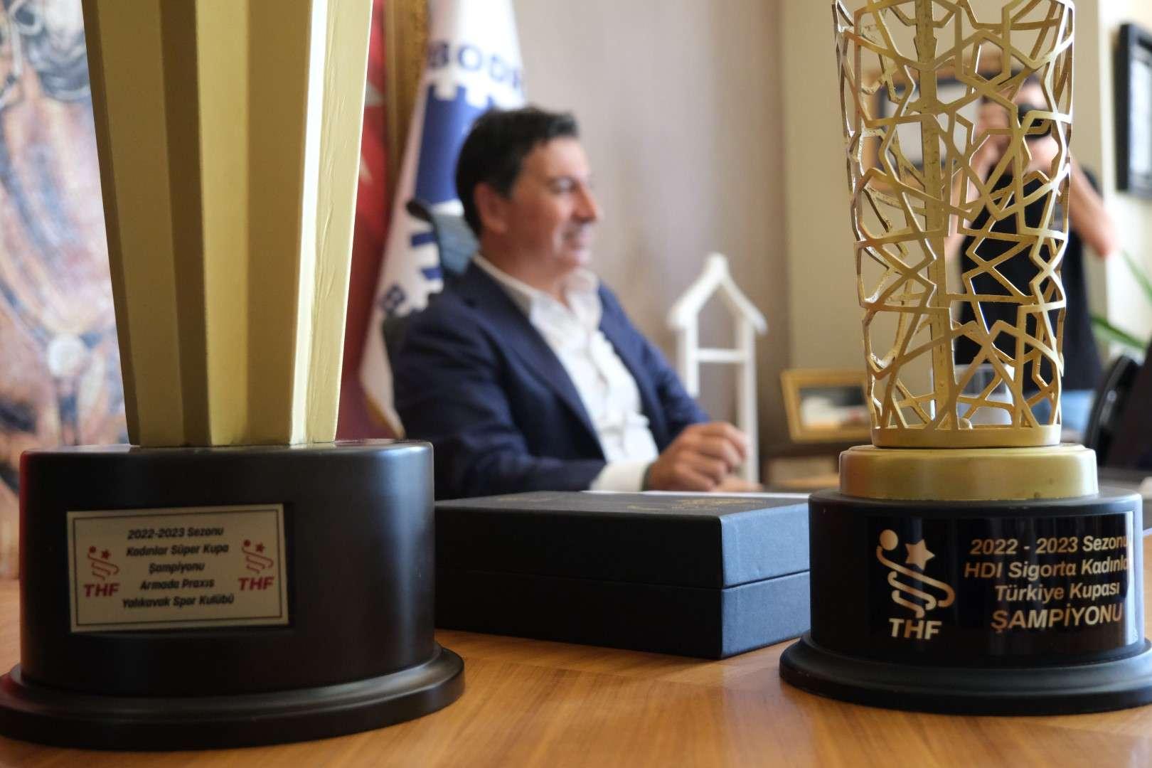 Belediye Başkanı Ahmet Aras, sezonun çifte kupalı şampiyonu Armada Praxis