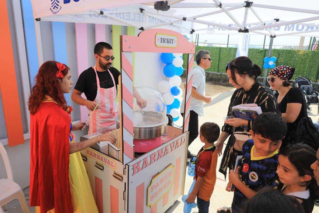 Açılış töreninde çocuklara özel olarak pamuk şeker ikramı yapılırken animatör ekibi alanda çocuklarla ilgilendi.