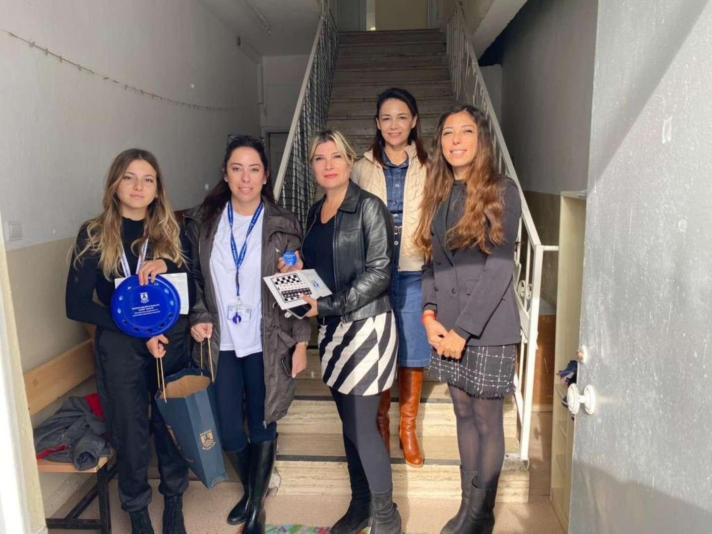 İçinde satranç takımı, trafik güvenliği rozeti ve frizbi