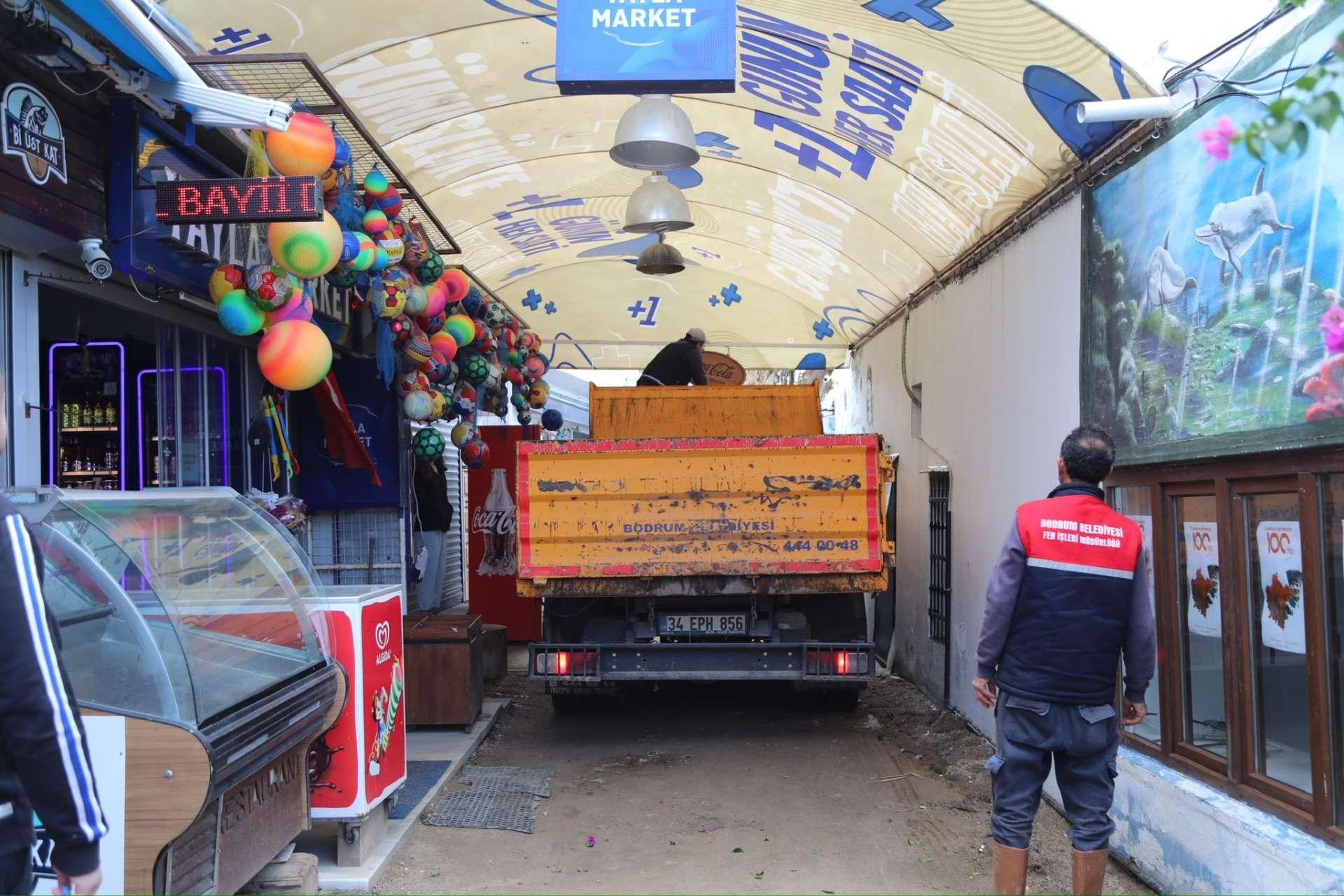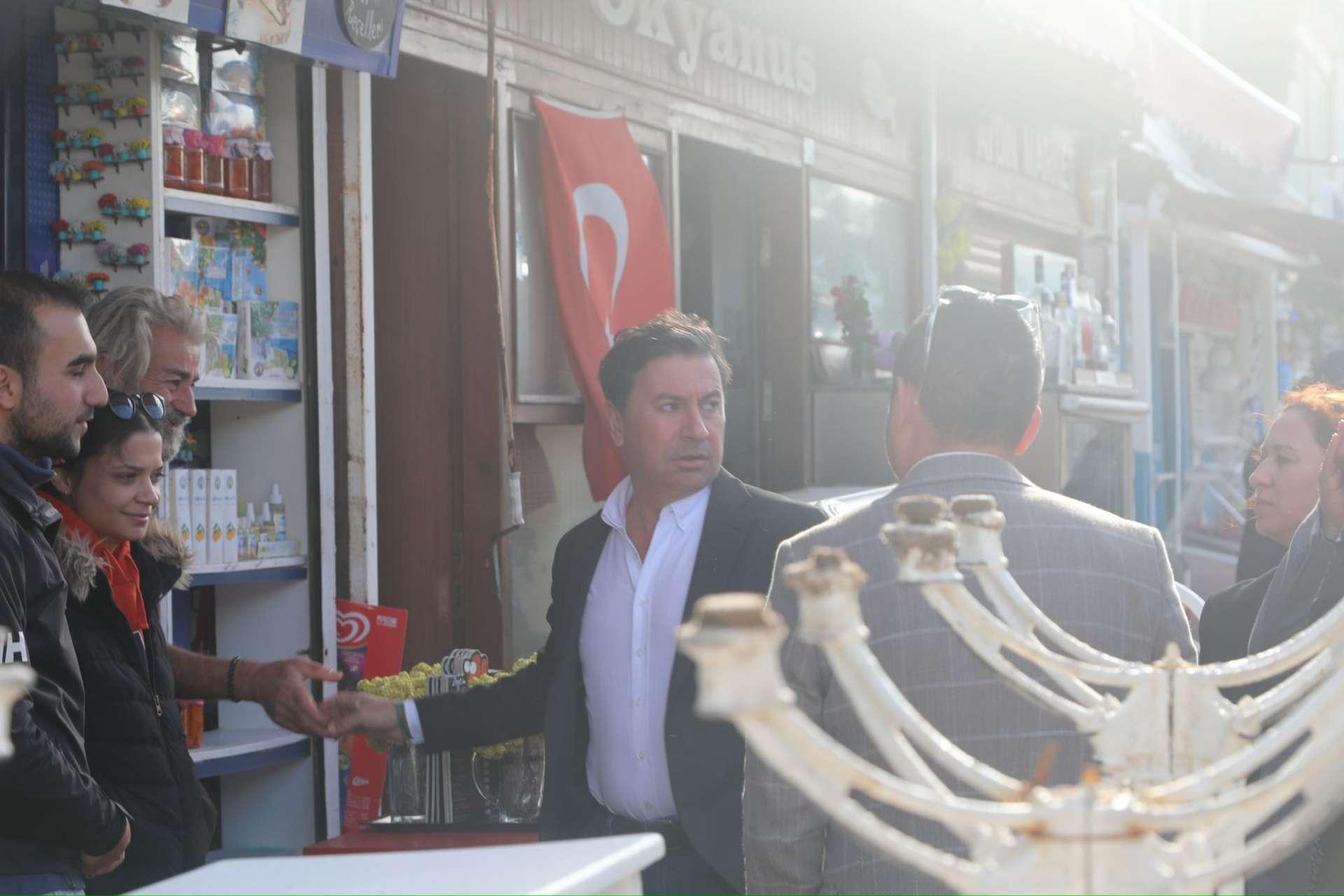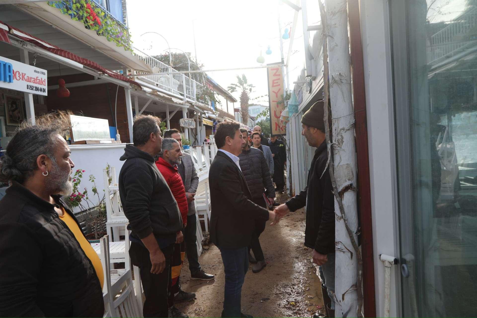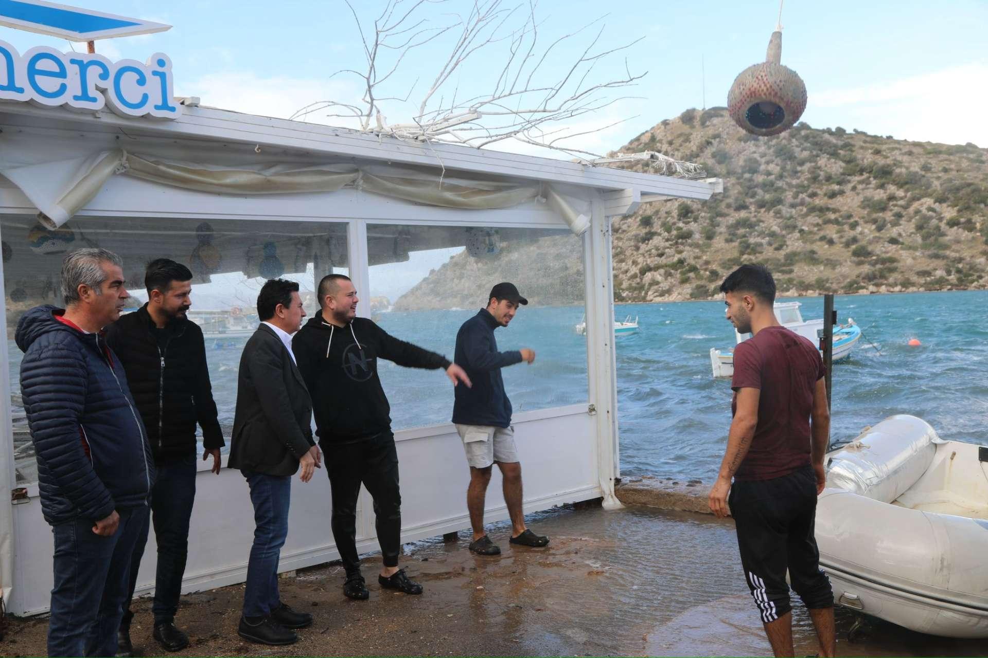Bodrum Belediye Başkanı Ahmet Aras, şiddetli fırtınadan etkilenen esnafı ziyaret etti.