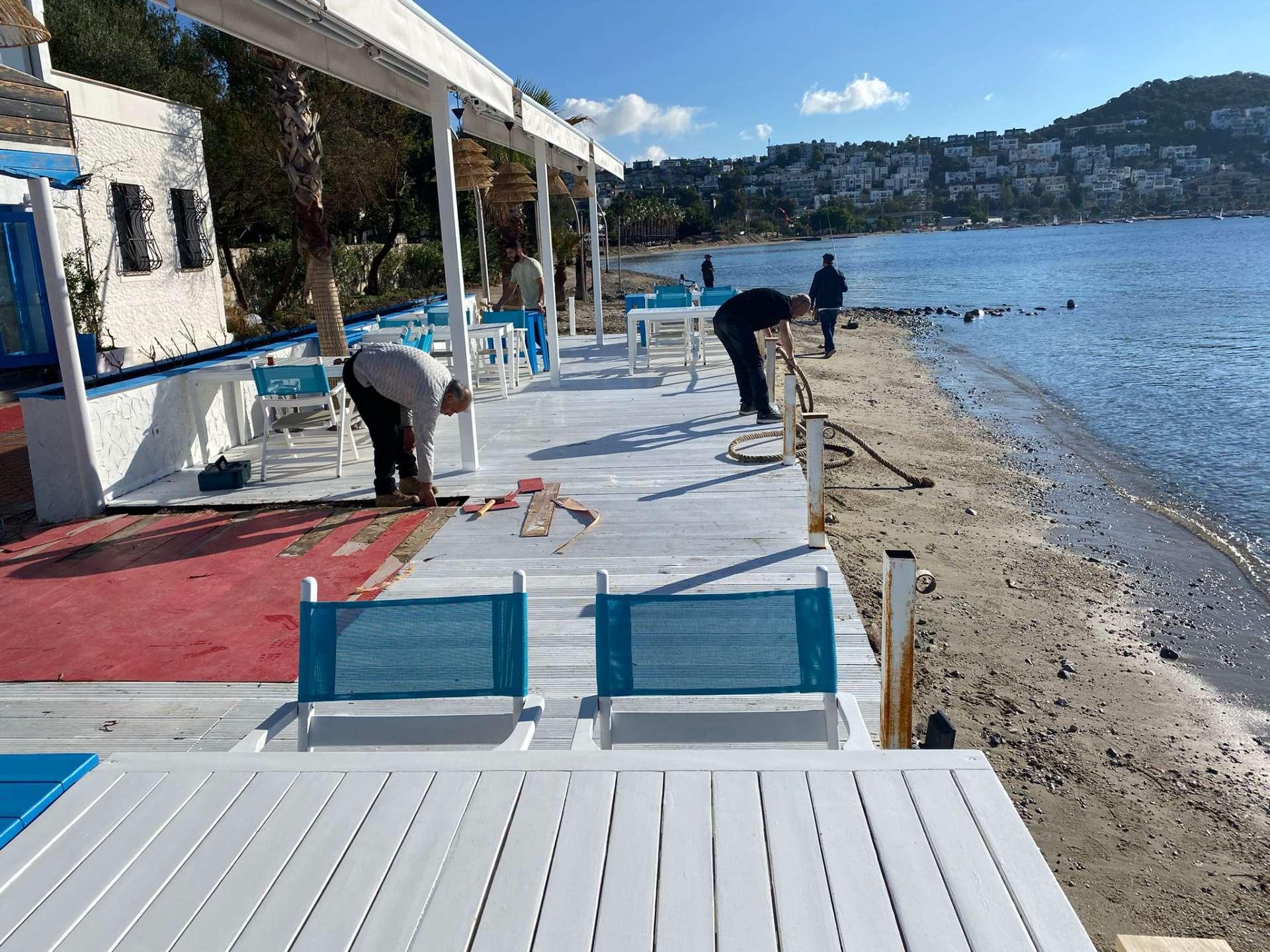 sonucu, Bitez sahilde kıyı işgaline sebep olan ahşap platform sökülüyor
