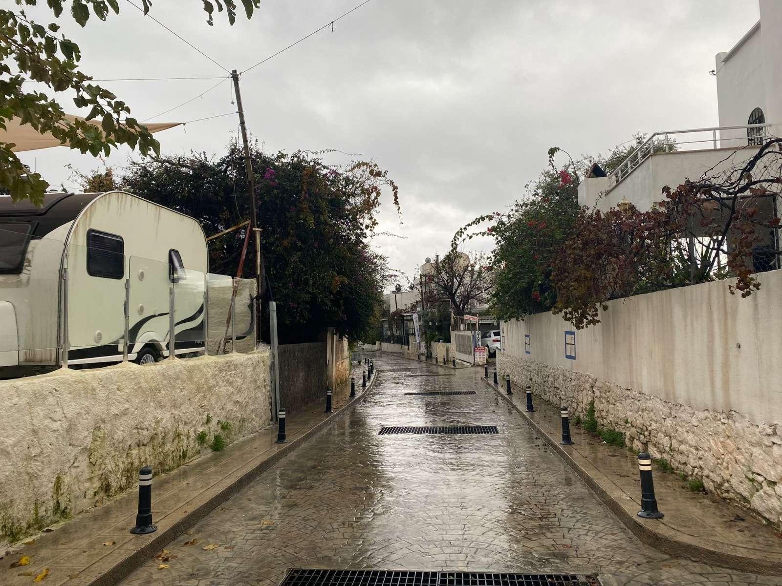 yandan, Turgutreis Mahallesi’nde bir aracın, yapımı devam eden yağmur drenaj