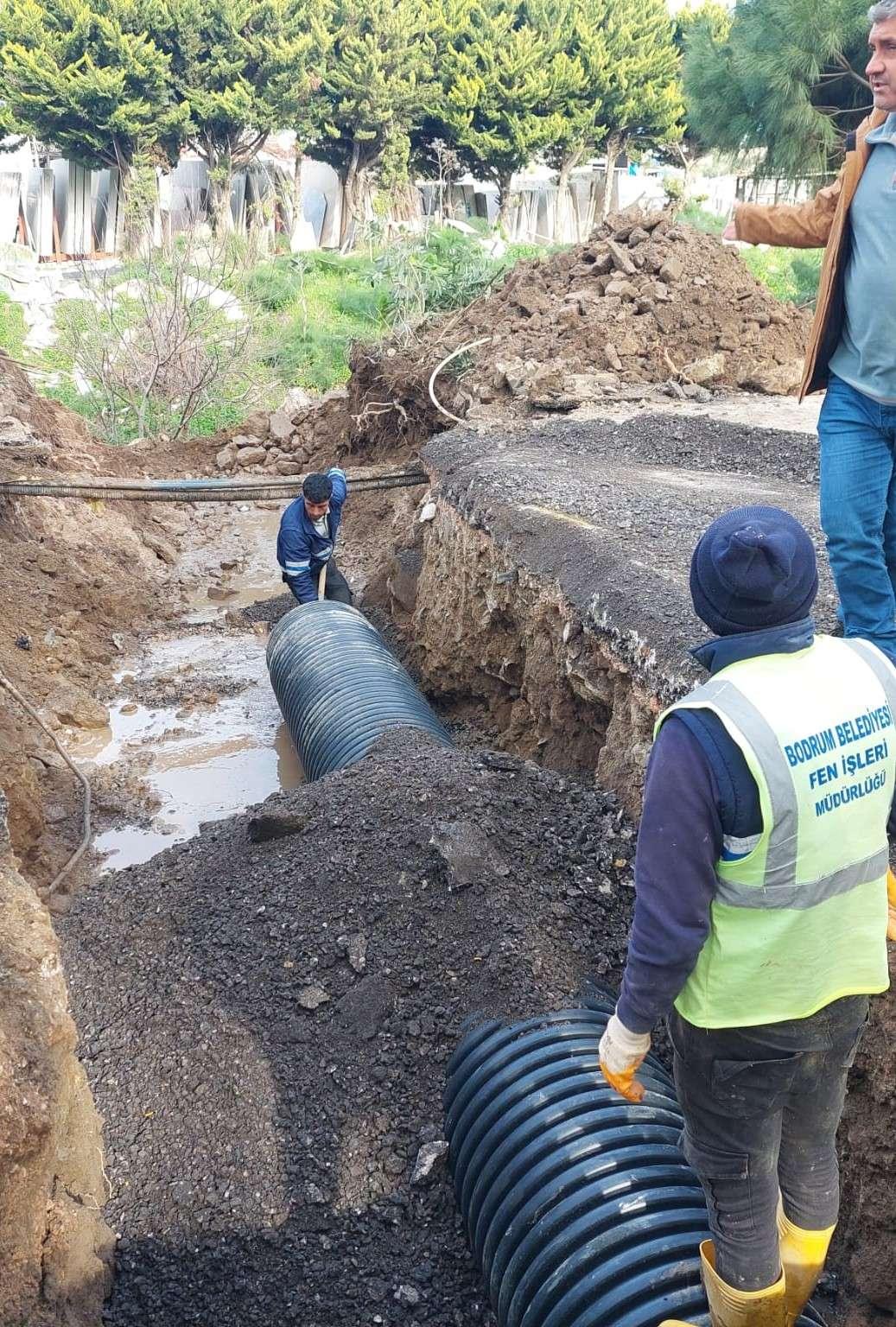 kapsamında, kamu yolunda çöken ve tıkanan mazgalda 600'lük koruge boruyu ve su