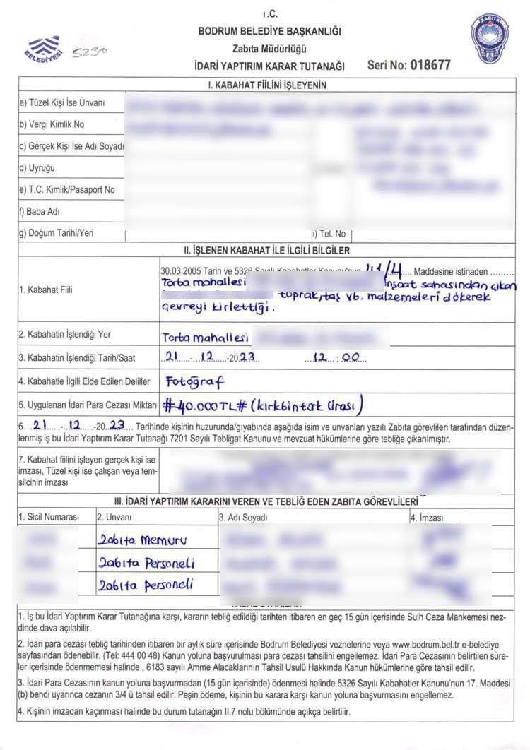 Yarımadada çeşitli bölgelere dökülen molozlar ve hafriyat kamyonlarının atıklarıyla ilgili rutin denetimler yapan Bodrum Belediyesi Zabıta Müdürlüğü ekipleri tarafından gelen şikâyetler de değerlendiriliyor. İnşaat artıklarını, toplanmasına veya depolanmasına özgü yerler dışına atarak çevreyi kirleten kişi ve firmalar tespit edilerek yasal işlem yapılıyor.