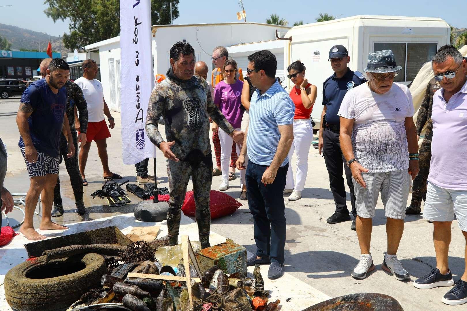 gerçekleşen deniz dibi temizlik çalışmasında gönüllü dalış ekibi denizden 213