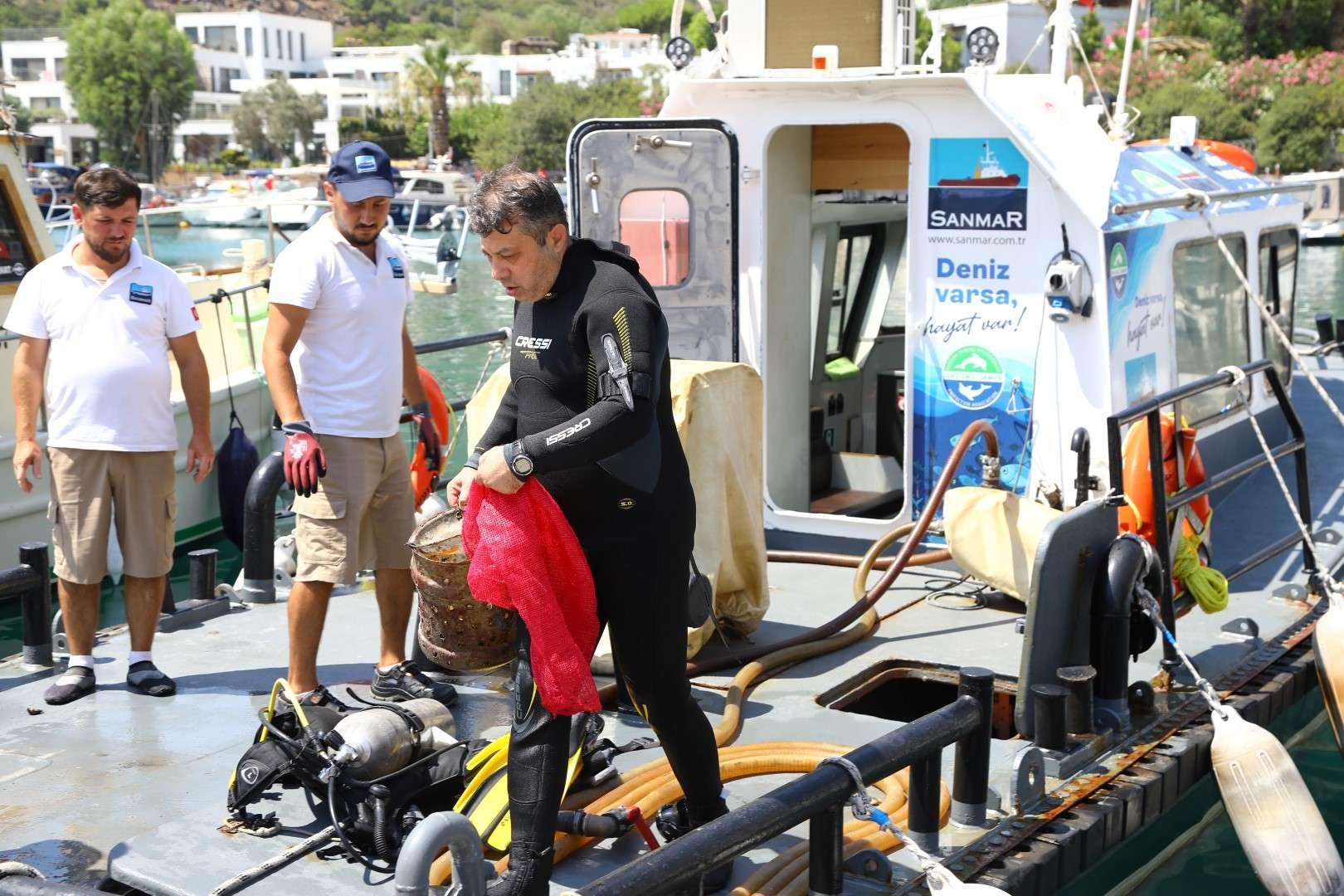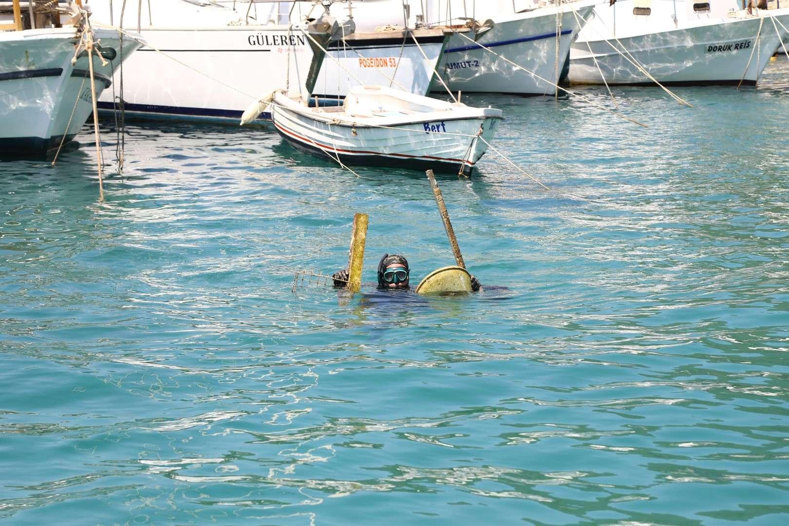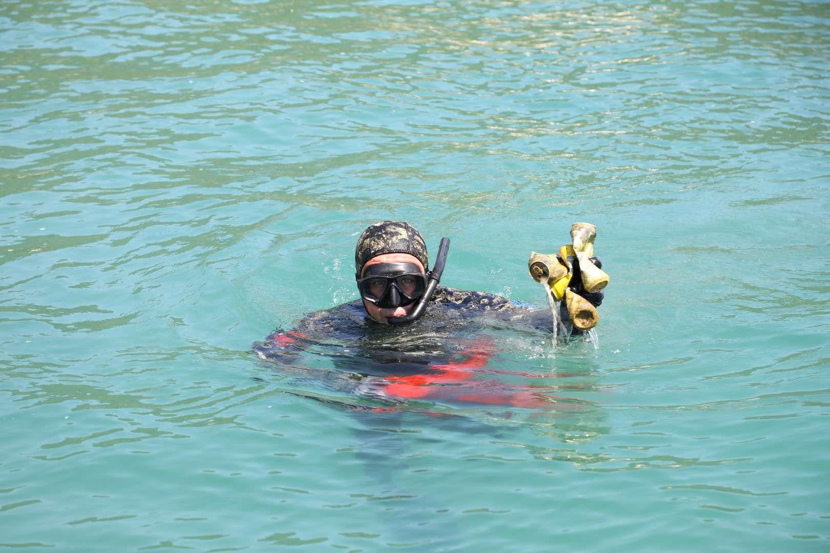 Deniz dibi temizliği çalışmasında denizden