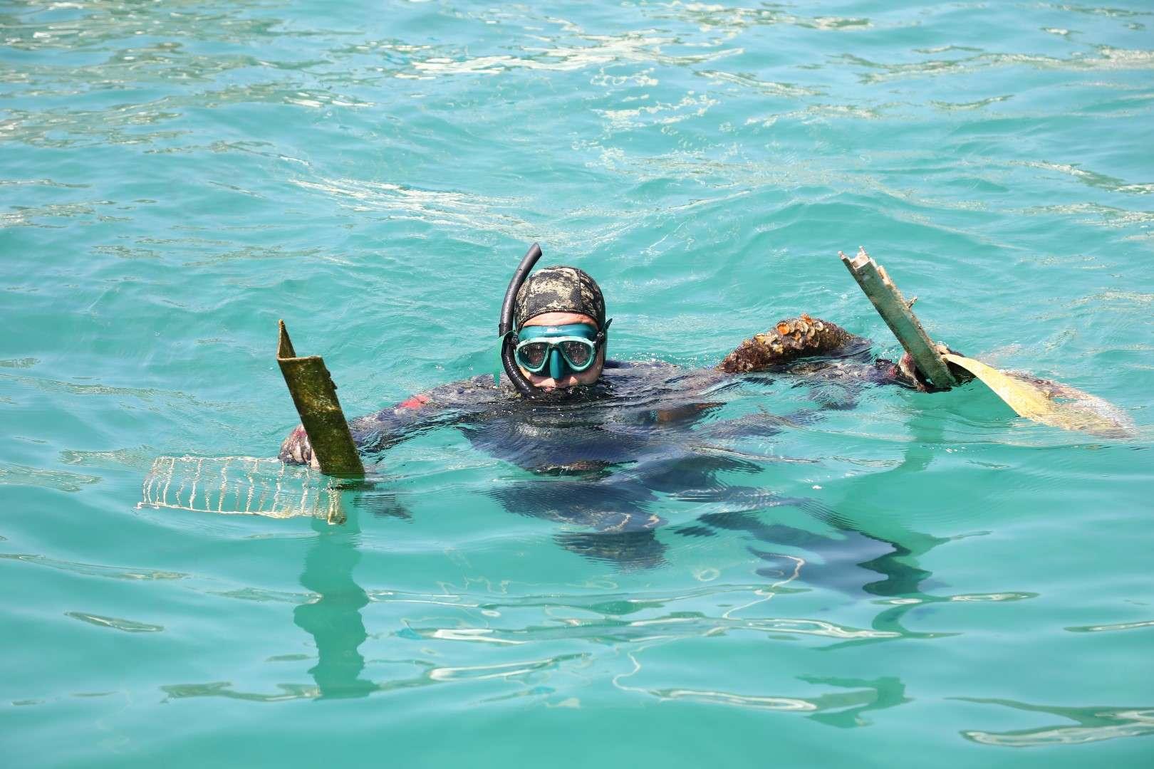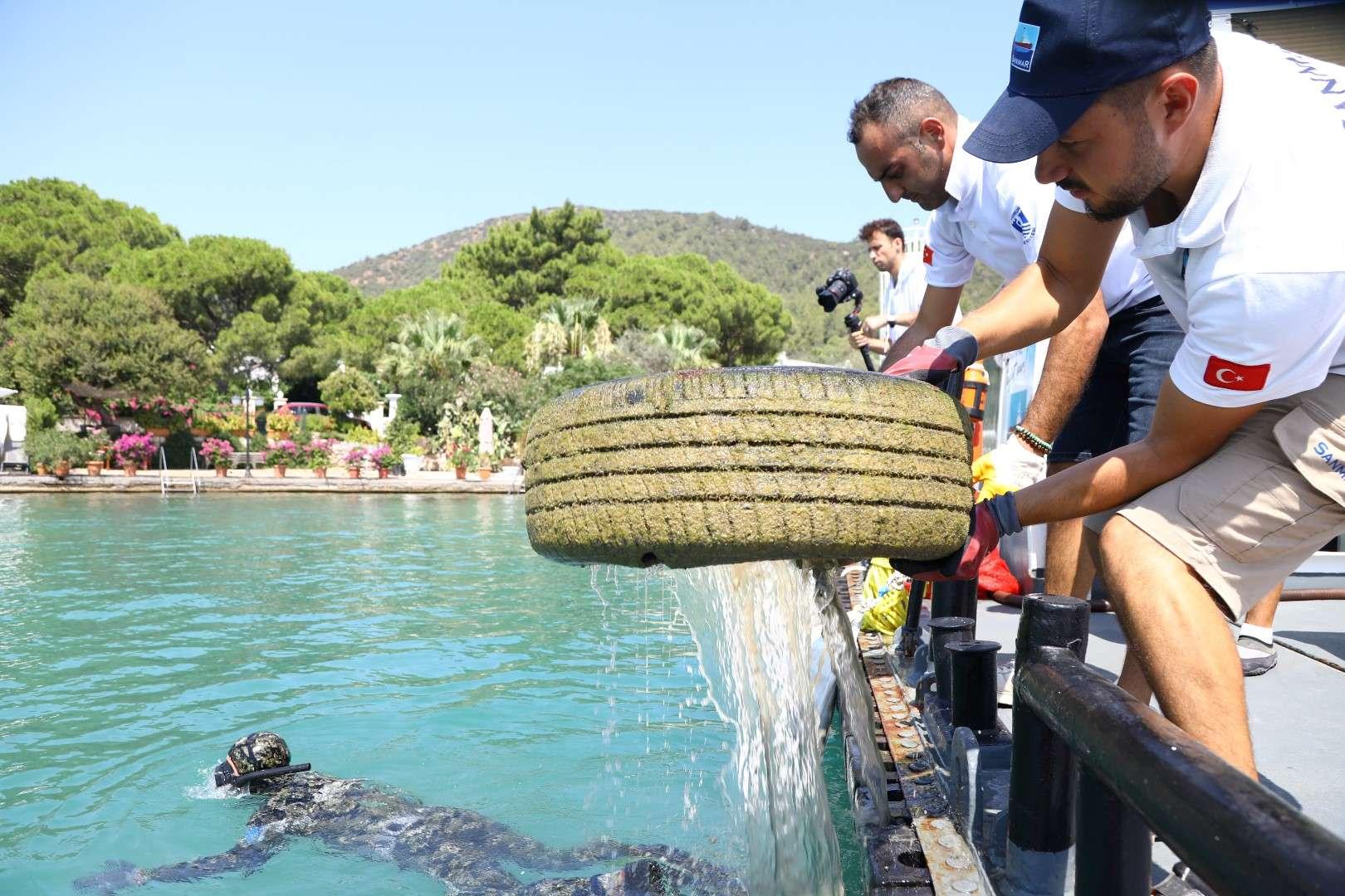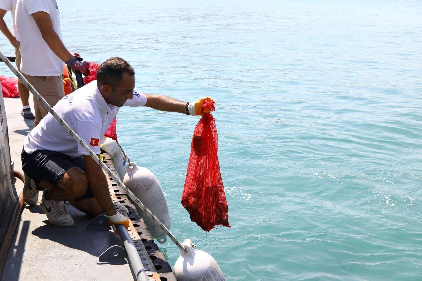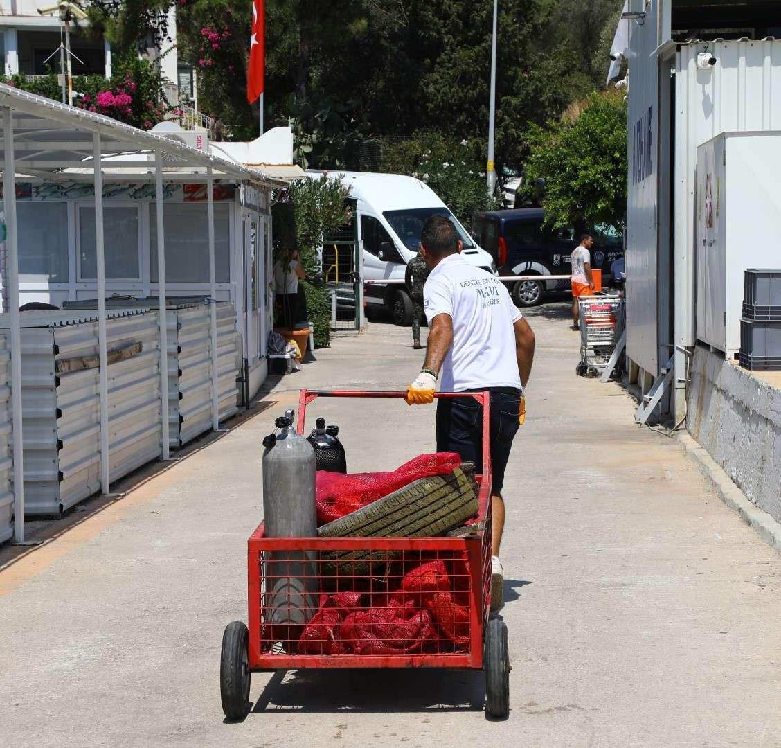 Deniz dibi temizliği çalışmasında denizden