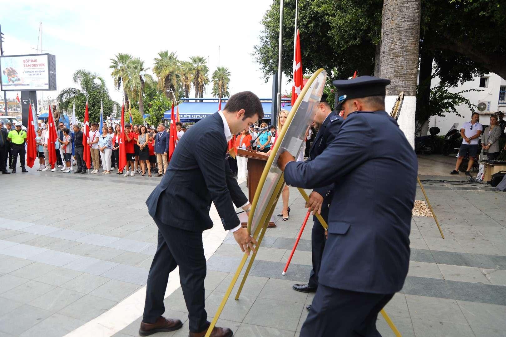 Bodrum Belediye Meydanında çelenk sunma töreni düzenlendi.