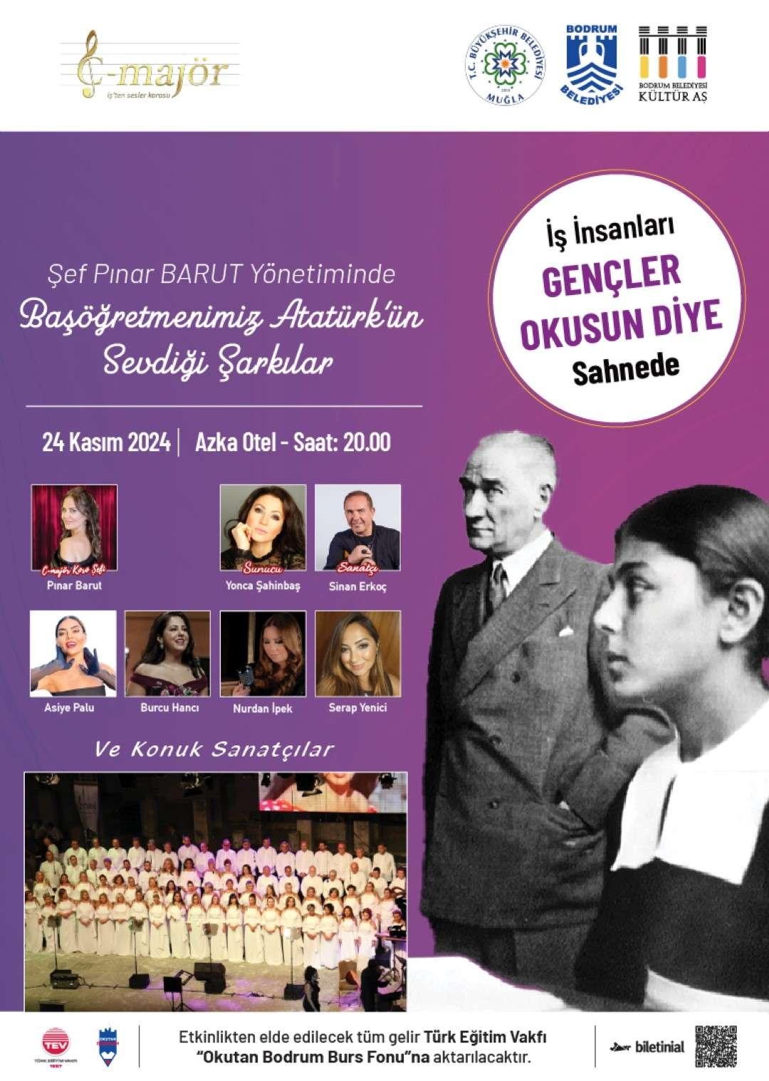 Şarkılar” için iş insanları sahnede yerini alırken Bodrum’da Ulu Önder Mustafa