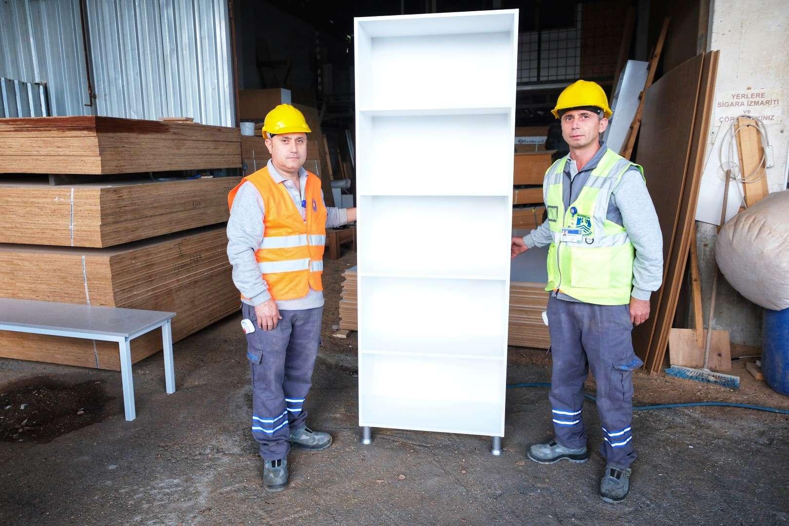 etajer, arşiv dolabı, kapı ve pencere üretimi yapılıyor. Okul sırası ve masa