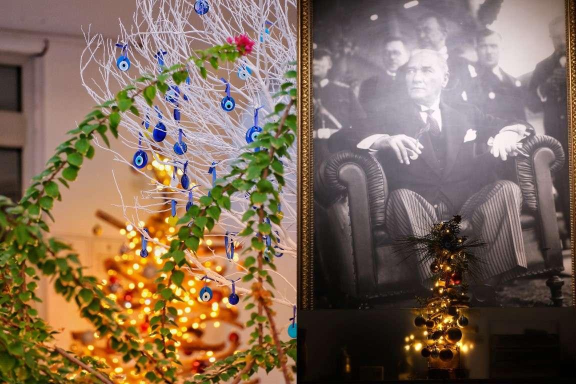 personeli de ağaçları ilgiyle karşıladı. Işıklandırma ve yeni yıl