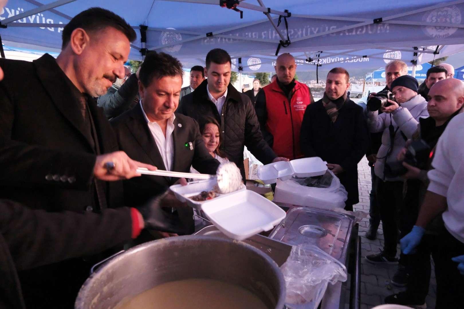 Başkan Mandalinci, Arsuz Belediye Başkanı Sami Üstün ve Arsuz Kaymakamı Hacı Hasan Gökpınar ile makamında bir araya gelirken Muğla Büyükşehir Belediyesi organizasyonuyla Arsuz Gözcüler Konteyner Kent Yerleşkesinde gerçekleşen yemek dağıtımına da katıldı.