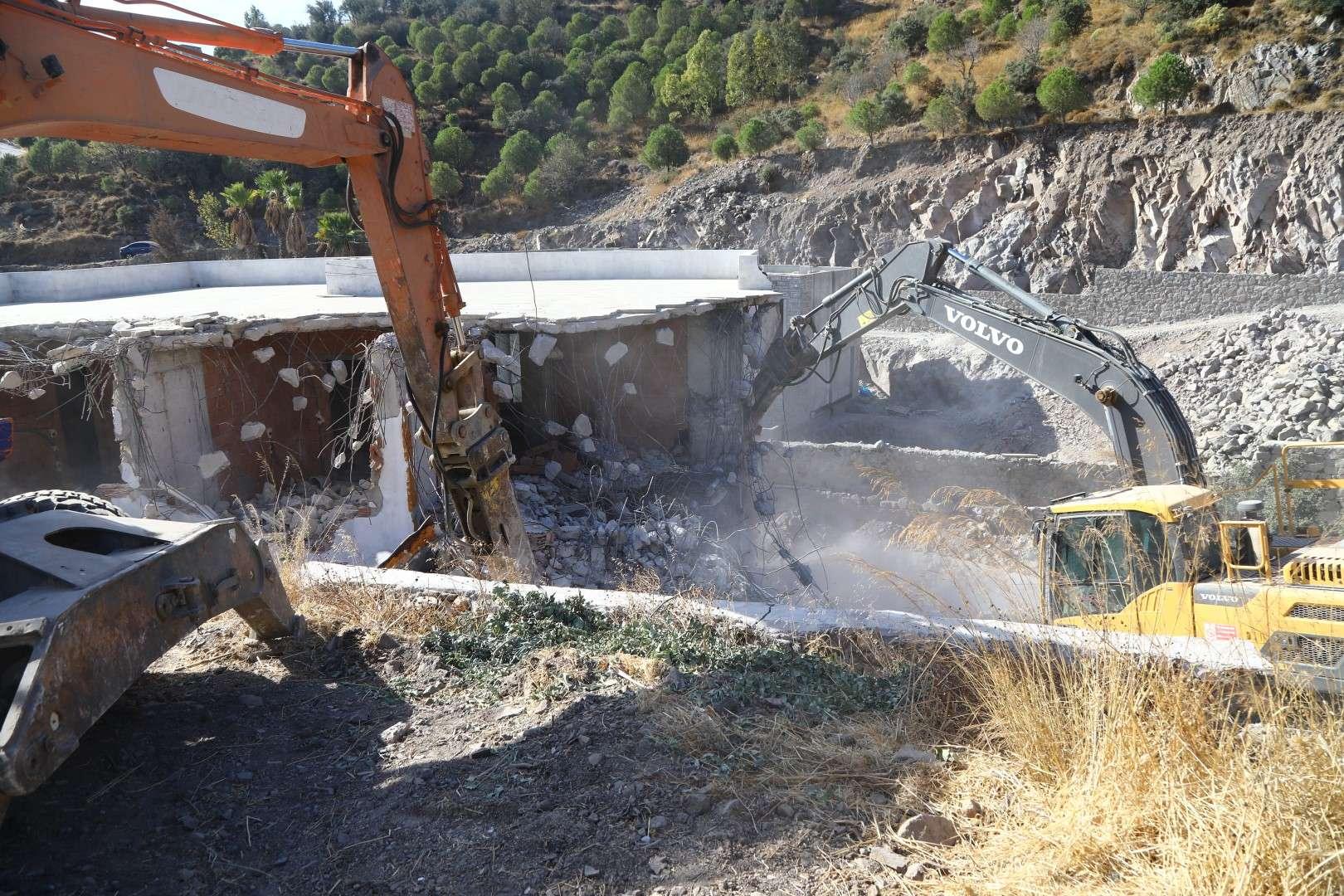 ardından kaçak yapıların yıkımı gerçekleştiriliyor.