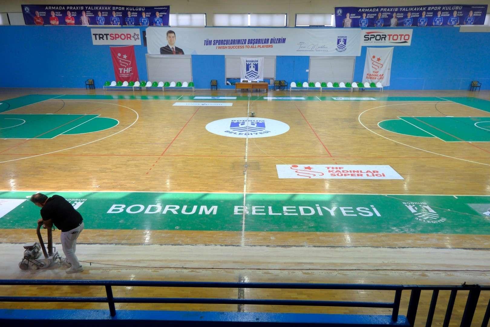 Karakaya Spor Salonunun zemininde gerçekleştirilen bakım ve onarım çalışmaları