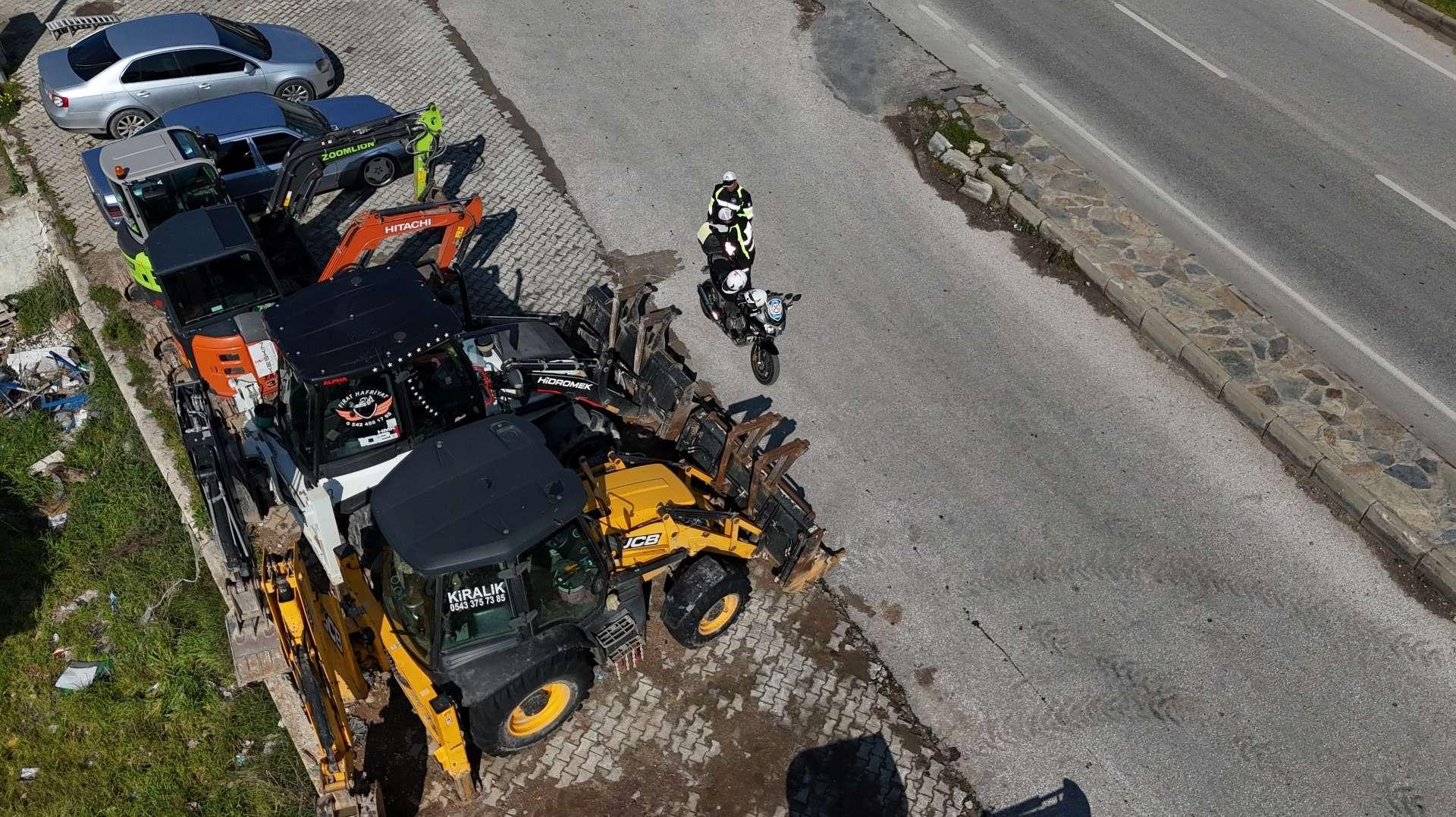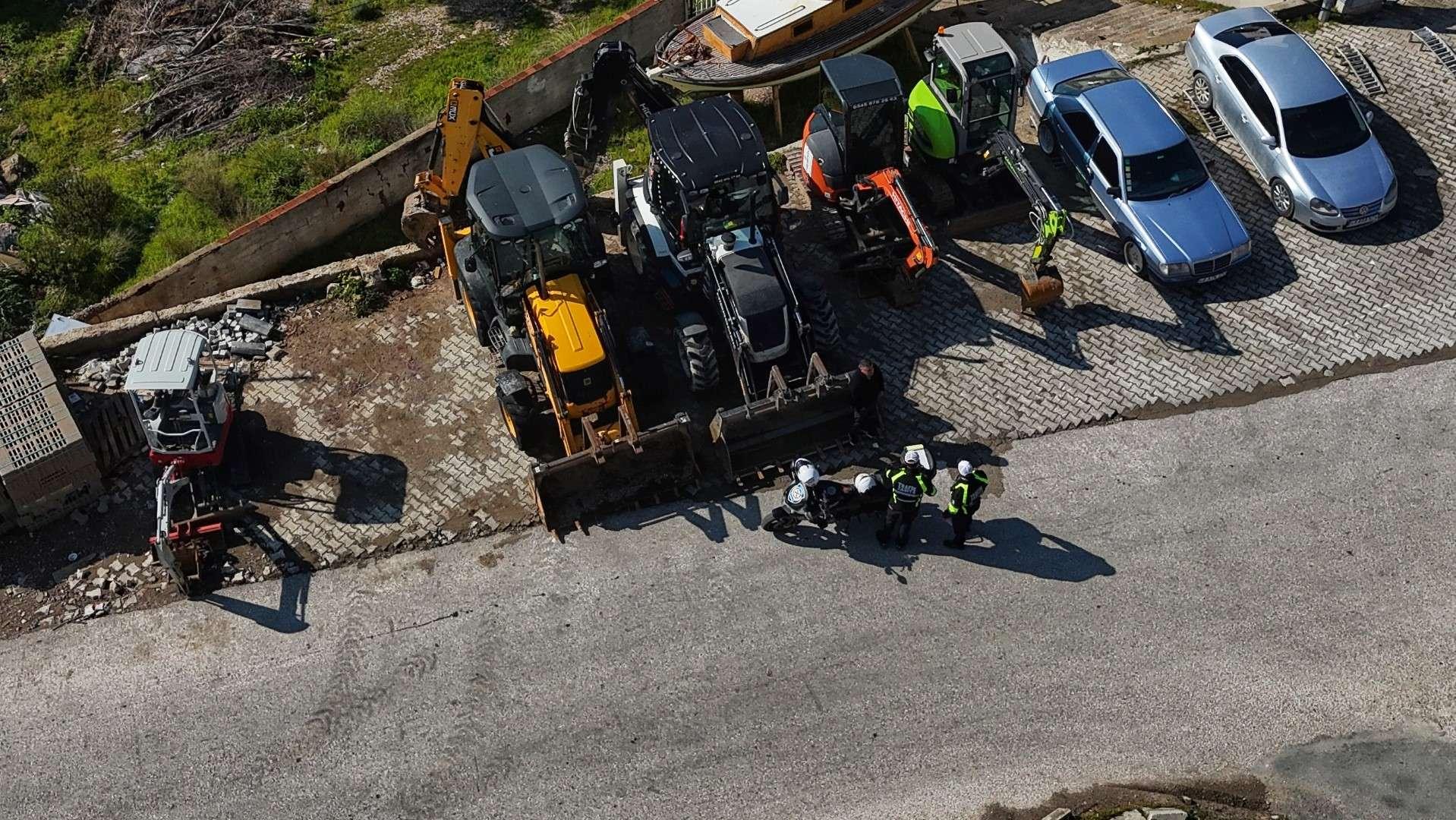 alanı işgal eden iş makinelerine uygulama gerçekleştirdi.